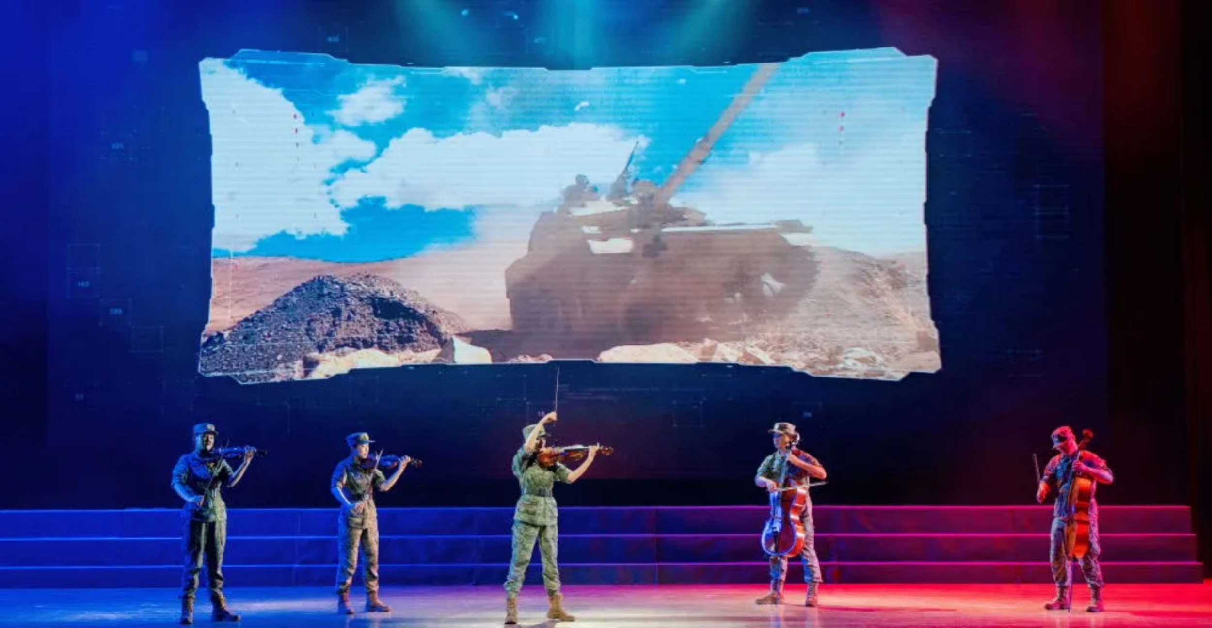 浑厚丰满的大提琴声和和谐明亮的小提琴声相互交织。弦乐五重奏《无形的战场》以激昂的旋律和磅礴的气势展现了信息战场的波诡云谲。没有硝烟四起,却时刻暗流涌动。激励官兵高擎科技利剑,决胜无形战场。