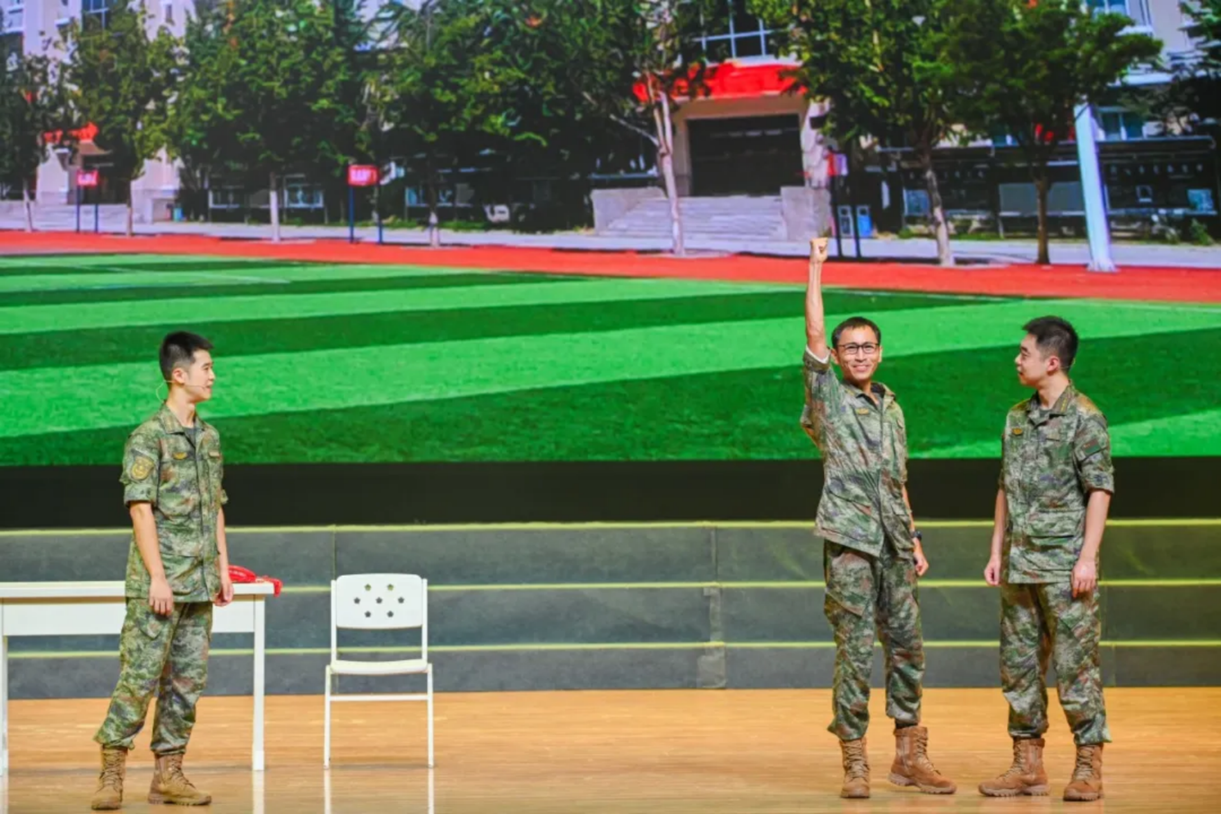 解放军文化艺术中心文艺轻骑队为我们带来了一场难忘的演出。充满活力的节奏和铿锵的歌声瞬间点燃了我们的热情,立刻就将我们带入了那热血沸腾的战场。嘹亮的歌声与誓言,如同战斗的号角,催人奋进,坚定着我“强军有我,强军必胜”的信念,激励着我不断向着“为军向战,奋进一流”的目标出发!