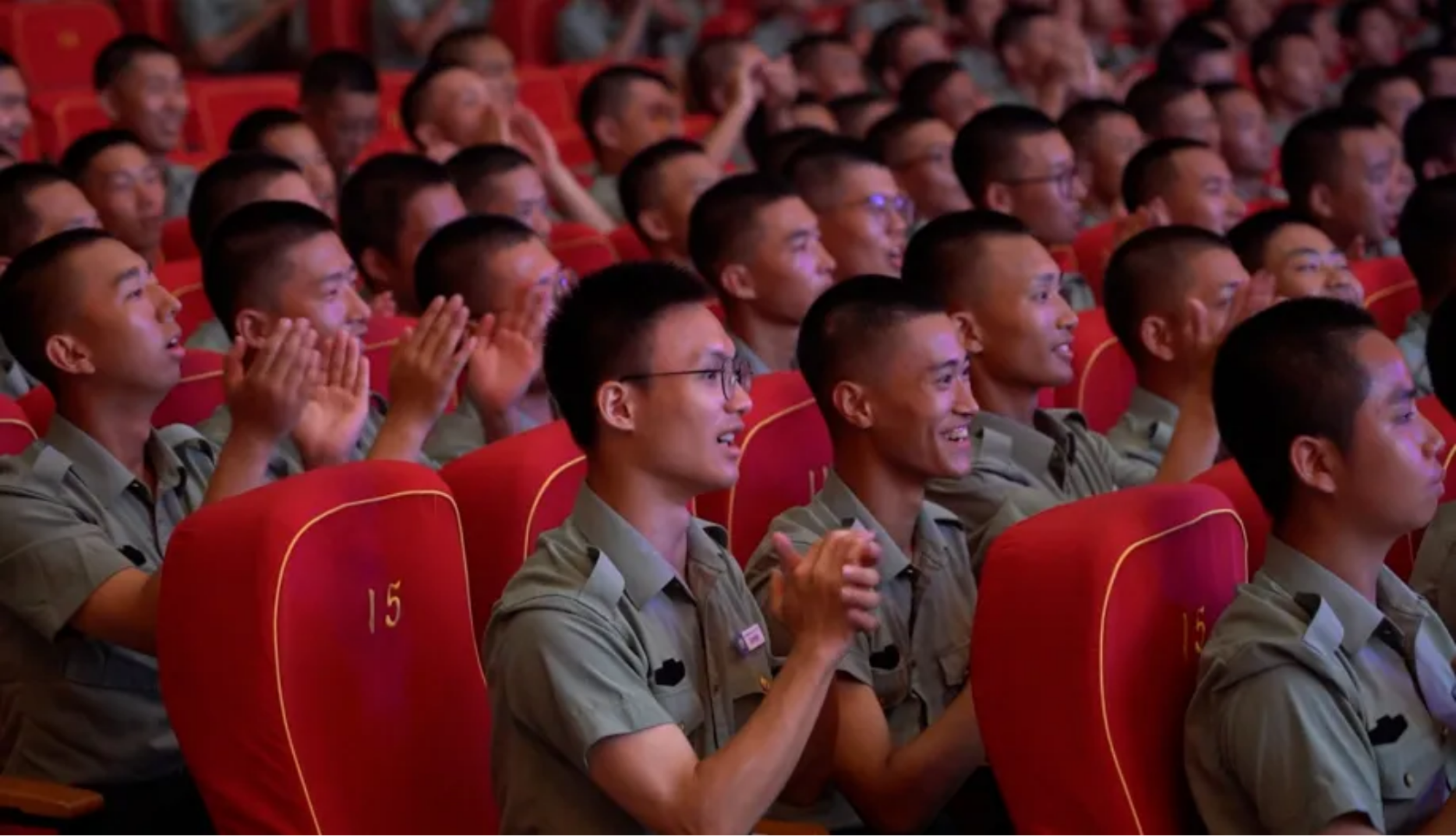 “融进大海,我是浪花一朵,洒向夜空,我是星星一颗……”随着歌曲《强军有我》昂扬的旋律响起,慷慨激昂的歌声将现场气氛引向最高点,“强军有我!强国有我!”嘹亮的歌声、铮铮的誓言,回荡上空,激扬在官兵心中。让我们向着建军一百年奋斗目标前进!让我们强军路上再相逢!