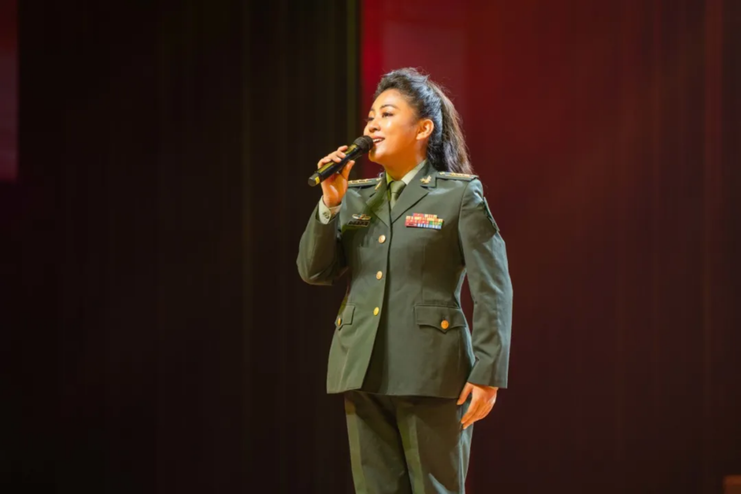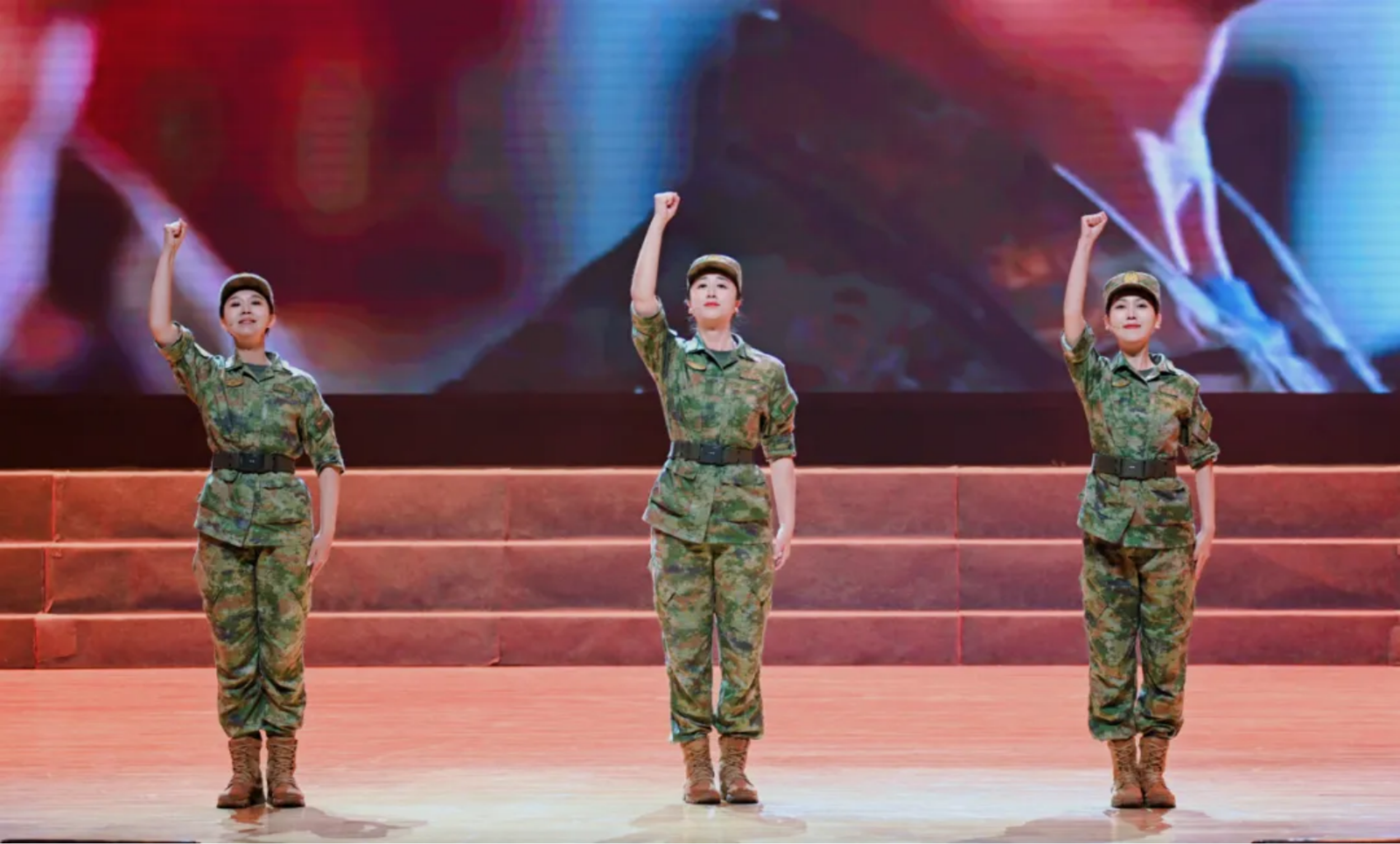 “我们的队伍雄赳赳,强军路上大步走,作风优良葆本色,豪情万丈写春秋……”女声独唱《强军路上大步走》以嘹亮高亢的歌声抒发着青春豪情,澎湃着新时代革命军人的热血斗志。
