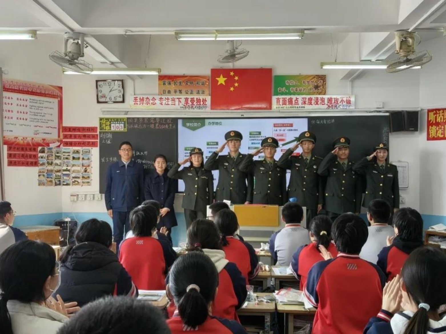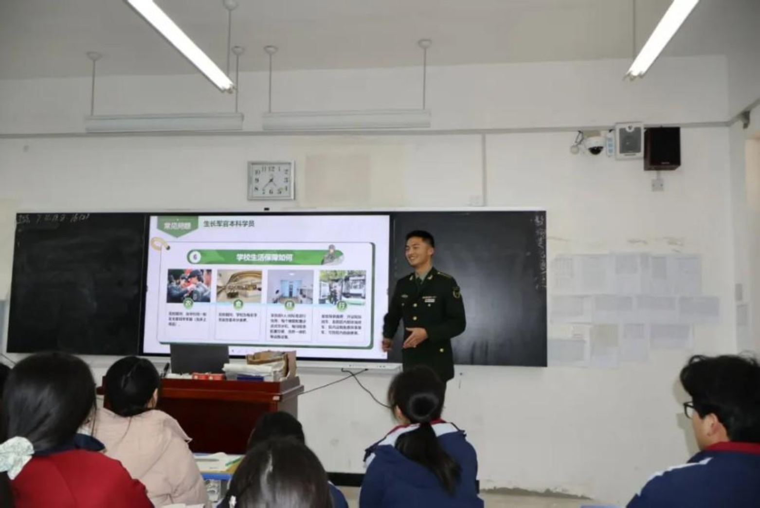 宣讲开始前,宣讲队成员明确以“政策解读+成长分享”为主线,围绕军校生活展开系统准备,对招生条件、专业设置、培养特色以及日常管理等内容进行细致梳理与演练,确保讲解既符合政策规范,又贴近高中学生实际,增强宣讲的针对性和感染力。