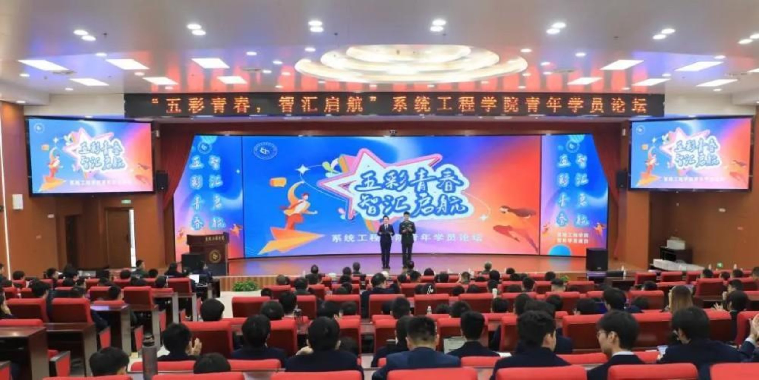 近日,系统工程学院举办“五彩青春 智汇启航”青年学员论坛,10名优秀学员上台分享经验和感悟。图为活动现场。(周偲)