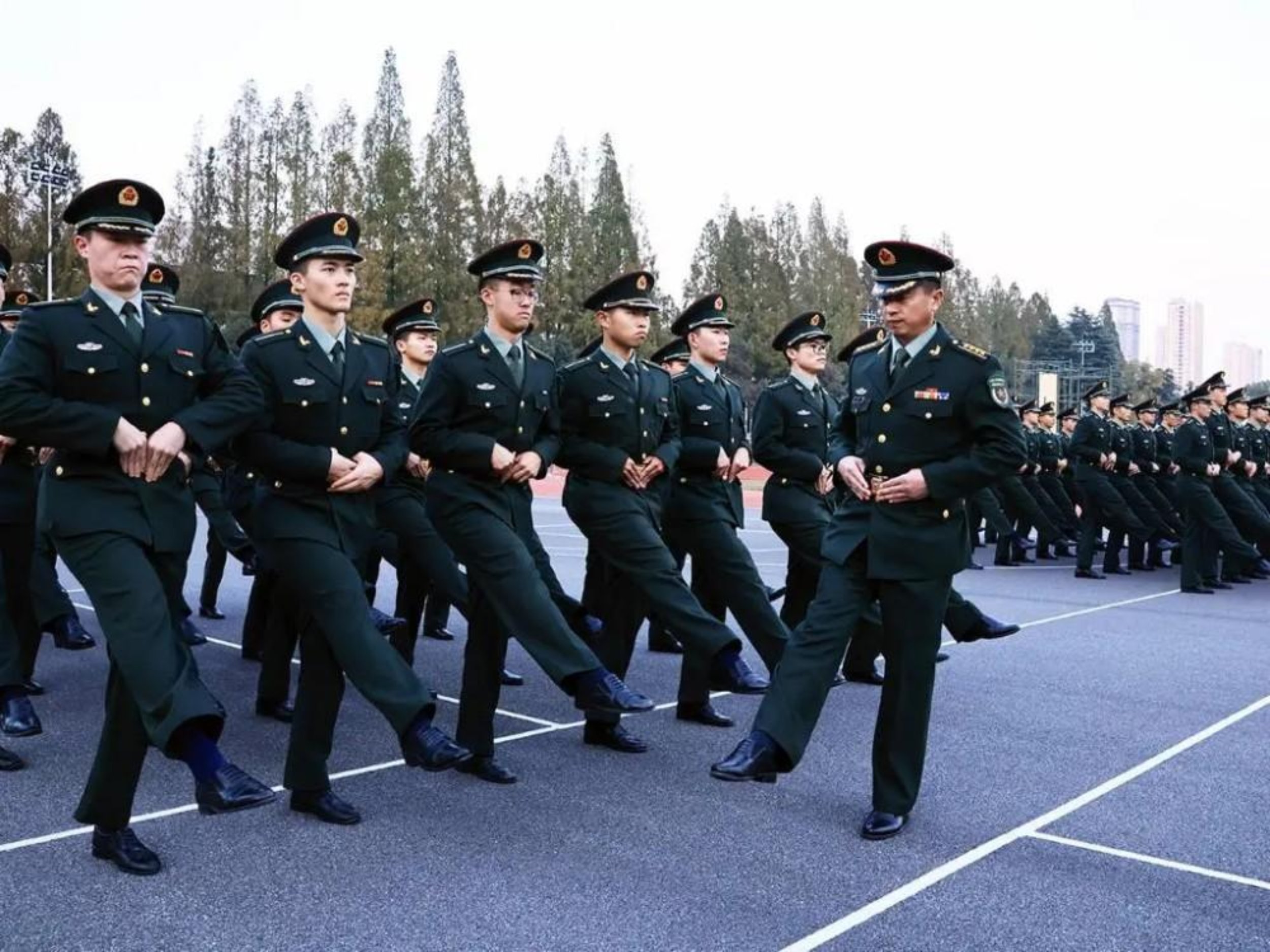 为进一步强化学员纪律作风,电子对抗学院学员某大队集中组织队列训练示范教学。图为军体教员指导学员队列养成。(李文杰)