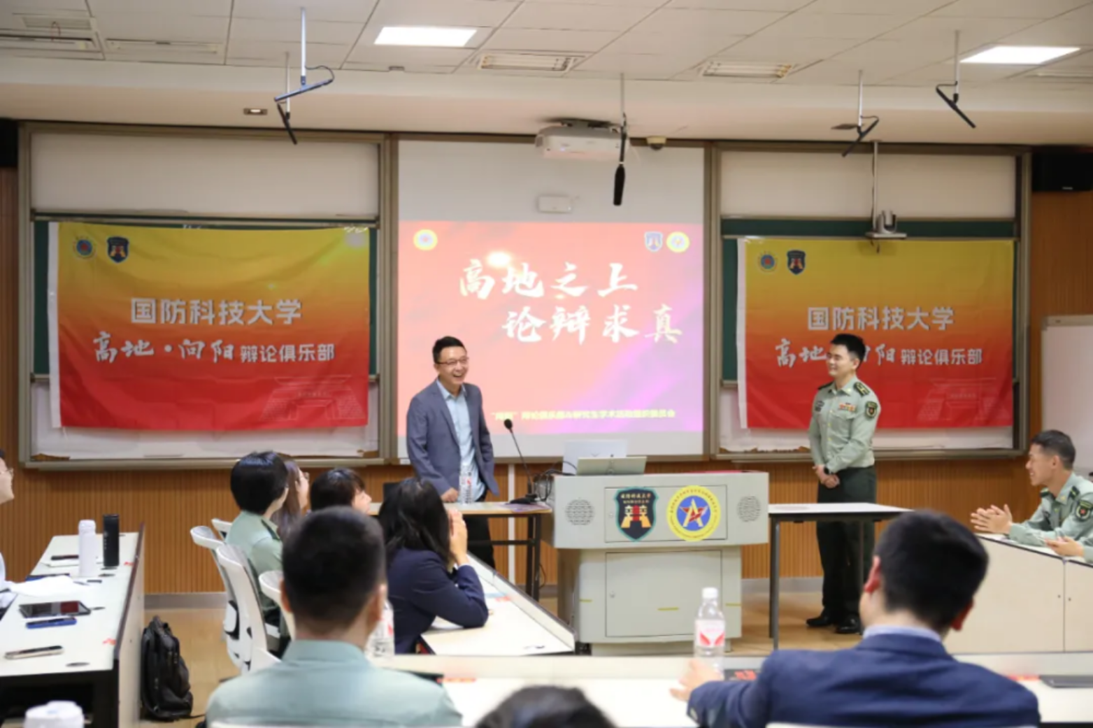 言抒己志,掷地有声,走进辩论,感受语言交锋带来的魅力。近日,学校“向阳”辩论俱乐部与研究生学术活动组织委员会邀请到优秀辩手路一鸣、杨子江走进国防科大与辩论俱乐部成员展开交流。学校政委陈国强授予路一鸣学校“高地”文化大使荣誉证,授予杨子江俱乐部“桃李”指导老师证。这是学校“高地星火”学生节配合活动之一。
