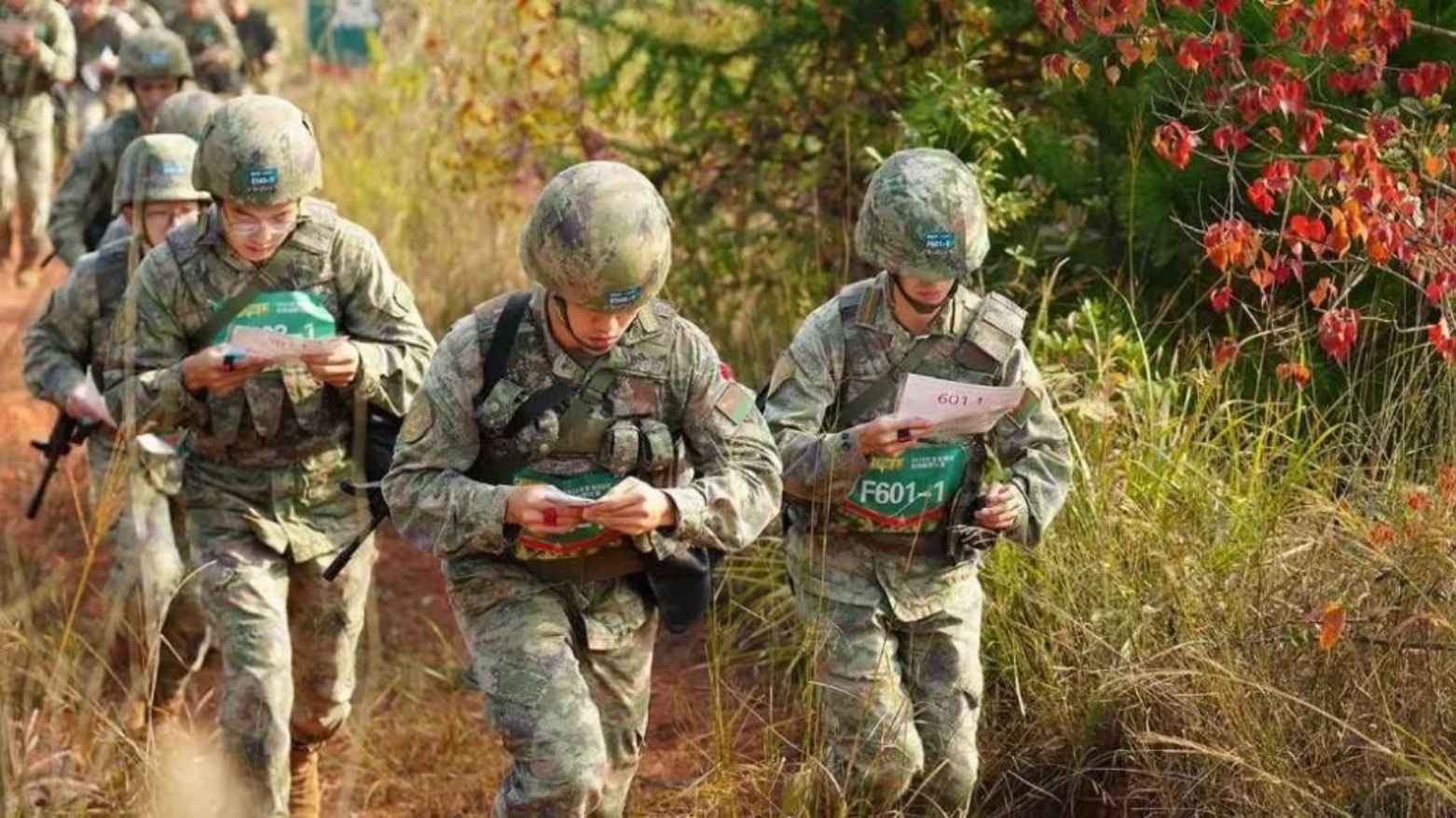 近日,2025年全军院校“强军杯”定向越野比赛在湖南长沙举办。比赛由中央军委训练管理部主办,beat365平台唯一官网、军事体育训练中心承办,设置小组接力、个人中距离、个人长距离和班组团队赛4个项目,来自全军23个院校、基地的31支代表队参加比赛。图为参赛选手按图行进。(杨熙莹、史绍琪)
