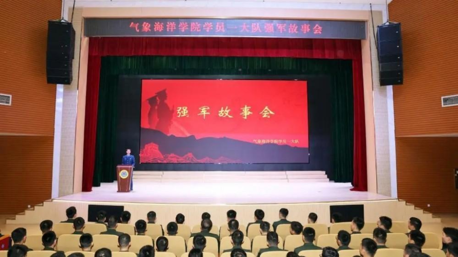近日,气象海洋学院学员某大队举办“强军故事会”,采取“身边人讲身边事”的形式,引导学员坚定理想信念,投身强军实践。(周富敬、谌虎)