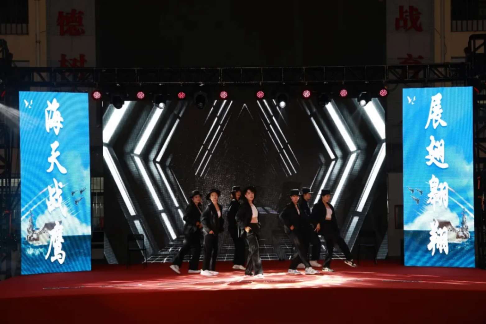 晚会在激昂军乐中启幕,学院师生齐聚见证。学员队舞蹈刚柔并济,既显柔韧身姿,又展坚毅力量;快板《激情奋进新征程》以清脆节奏细数两年淬炼足迹,将晚会推向高潮。