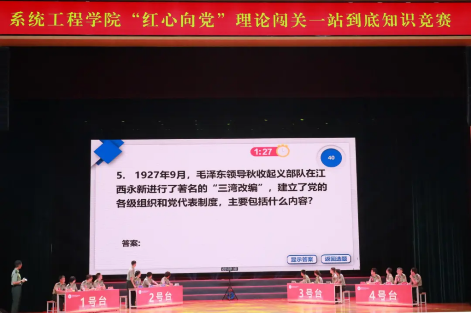 为检验官兵学习成效,近日,系统工程学院举办“红心向党”理论闯关知识竞赛。图为竞赛现场。(庹铁闯、付恒宇)