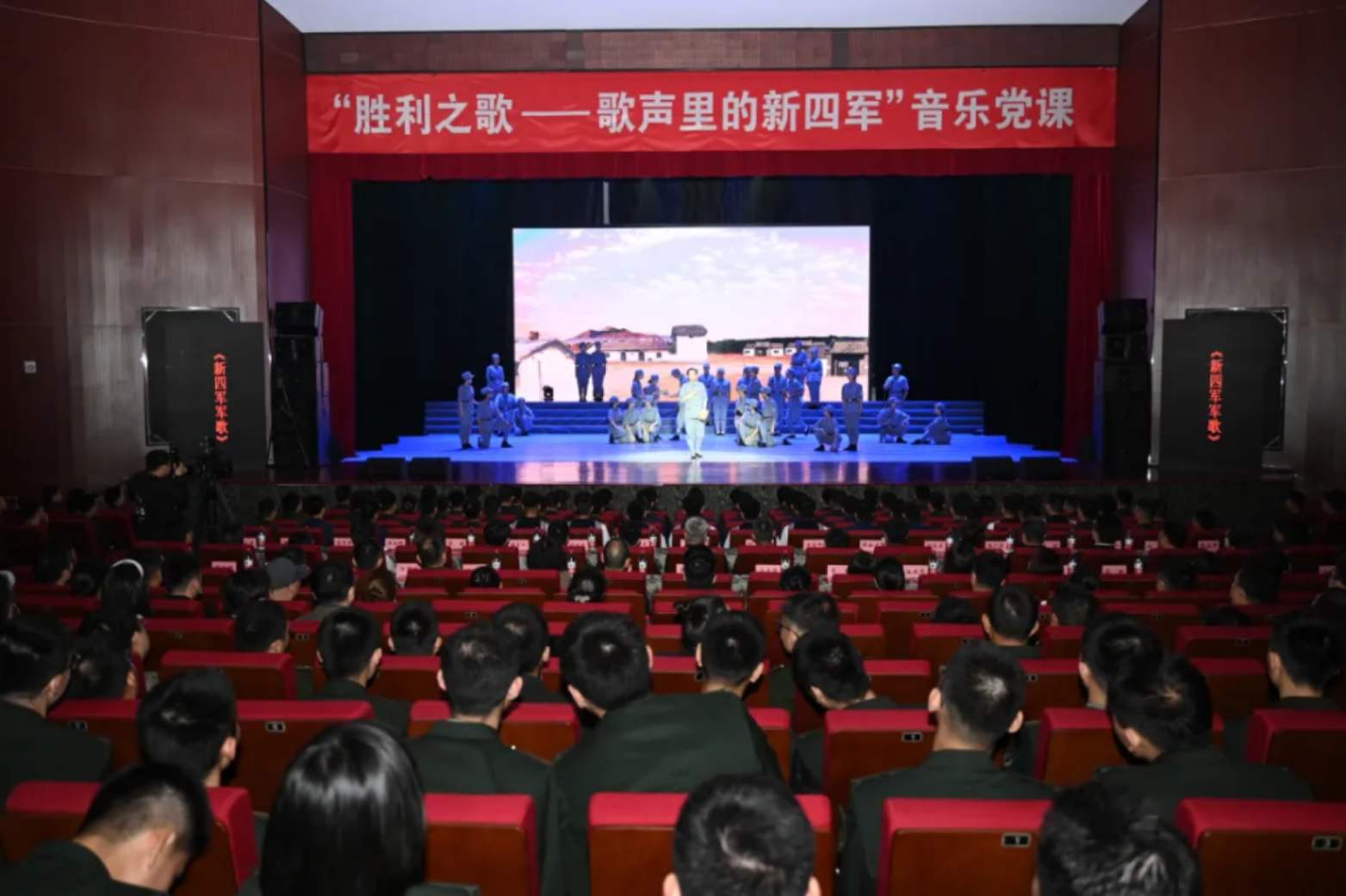 为弘扬伟大抗战精神,纪念中国人民抗日战争暨世界反法西斯战争胜利80周年,同时,创新开展“文艺思政”,探索启智润心育人新范式,近日,beat365平台唯一官网外国语学院特别邀请新华报业传媒集团与南京师范大学师生来院,为官兵送上一堂共同策划创排的音乐党课《胜利之歌——歌声里的新四军》。此次演出也是该剧目启动巡回展演的首场演出。江苏省委党史工办、省档案馆、省文旅厅、宣传部相关处室负责同志,南京市委宣传部、新华报业传媒集团和兄弟单位特邀嘉宾,南京师范大学和学院主要领导参加活动。