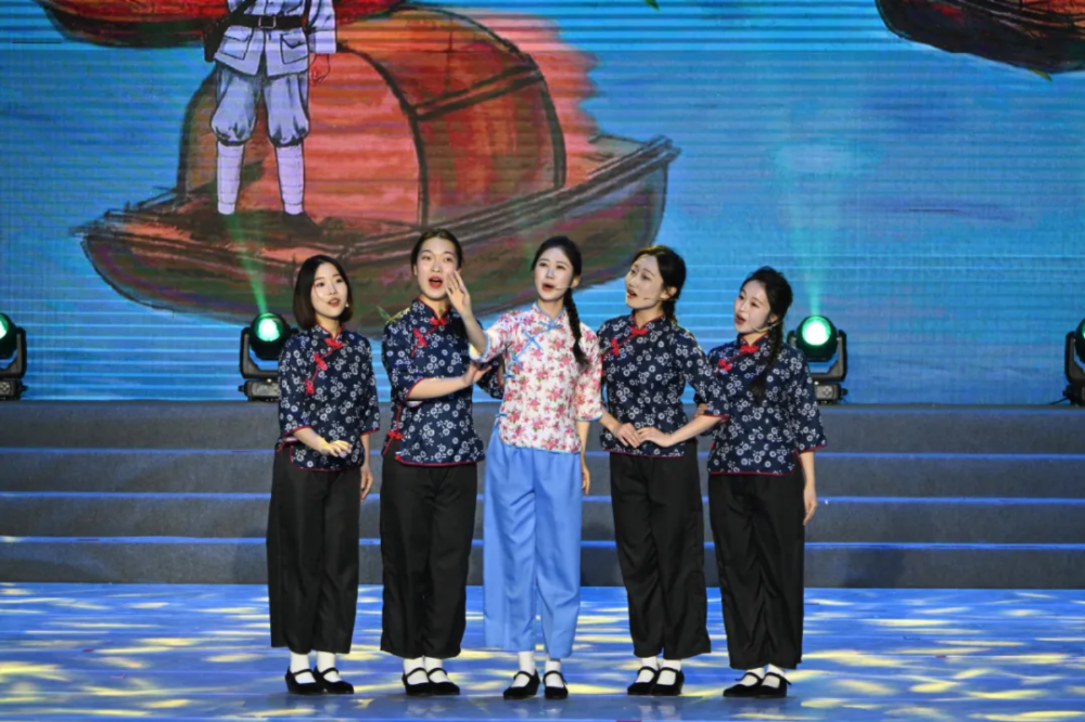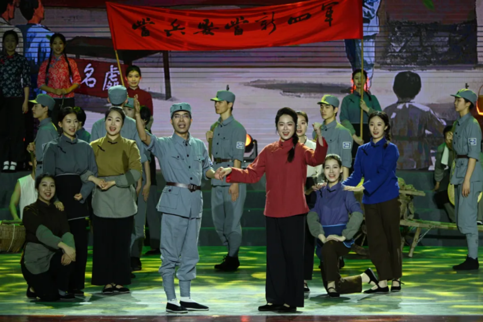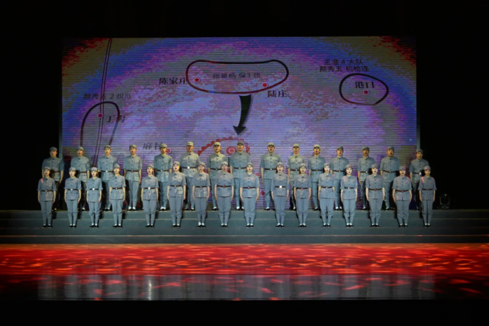 展演共设置“烽火燃起”“鱼水情深”“浴血奋战”“胜利曙光”“薪火传承”五个篇章。以新四军在江苏的革命历史为主线,以留存的珍贵战地歌曲为蓝本,创新融合历史影像、现代编曲与沉浸式舞台呈现,全景展现了党领导下的新四军在全民族抗战中的重大贡献,讴歌新四军“不怕困难、不畏艰险、勇于斗争、敢于胜利”的革命精神,深刻把握“江山就是人民,人民就是江山”的内涵意蕴。