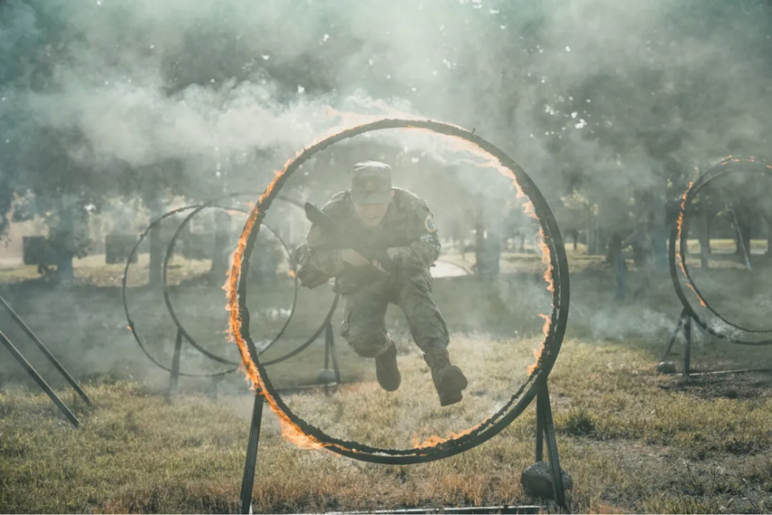 “报告,连长‘牺牲’了。”随着一片白烟在林间升起,作为指导员的夏睿才发现,在第一梯队的连长和战友纷纷“牺牲”。他来不及思考,立即接过“指挥棒”,收拢兵力,并把剩余兵力分成三个队伍,分左、中、右三路进攻,并及时调整作战思路,启动无人机侦察。队伍迅速从原来的孤立分散,变成了交替掩护。很快,蓝方射击的枪声消失了。正当夏睿以为自己的作战策略起作用时,身边掩护他的战友身上突然冒起白烟。