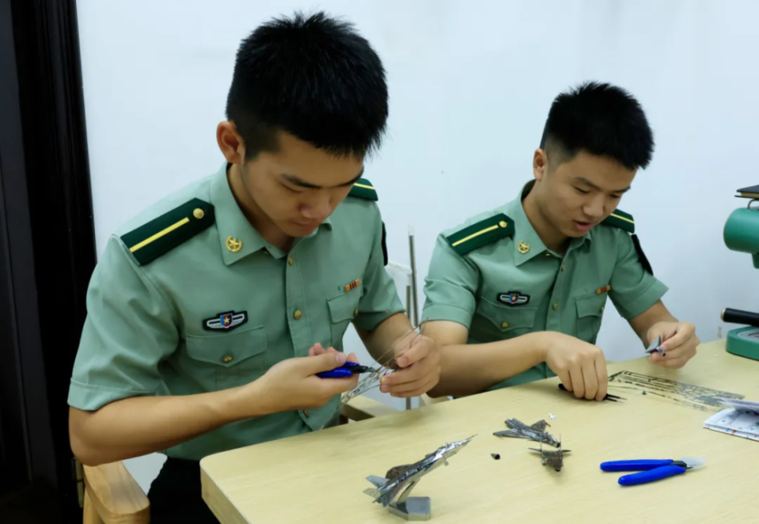 静谧的午后,该学员队平日颇具战味的“战研小屋”里多了几分温情。战略研究小组骨干于熙月召集了几名战友,为学生们制作军事装备模型。