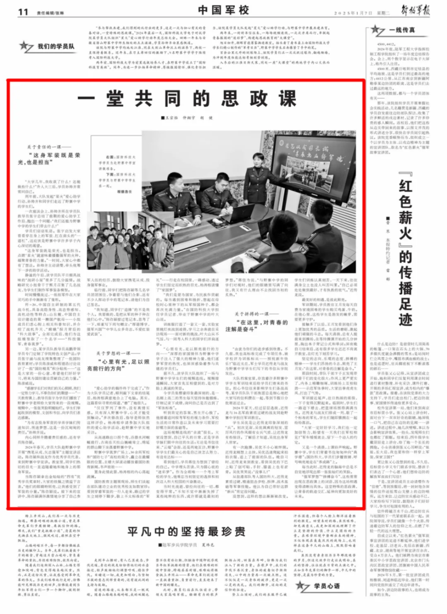 “强军梦想”“拼搏奋斗”,这些常常出现在思政课上的词语,因为这场相遇变得清晰而具体。这堂特殊的思政课,让青春的轨迹交汇,延伸向更加美好的未来。