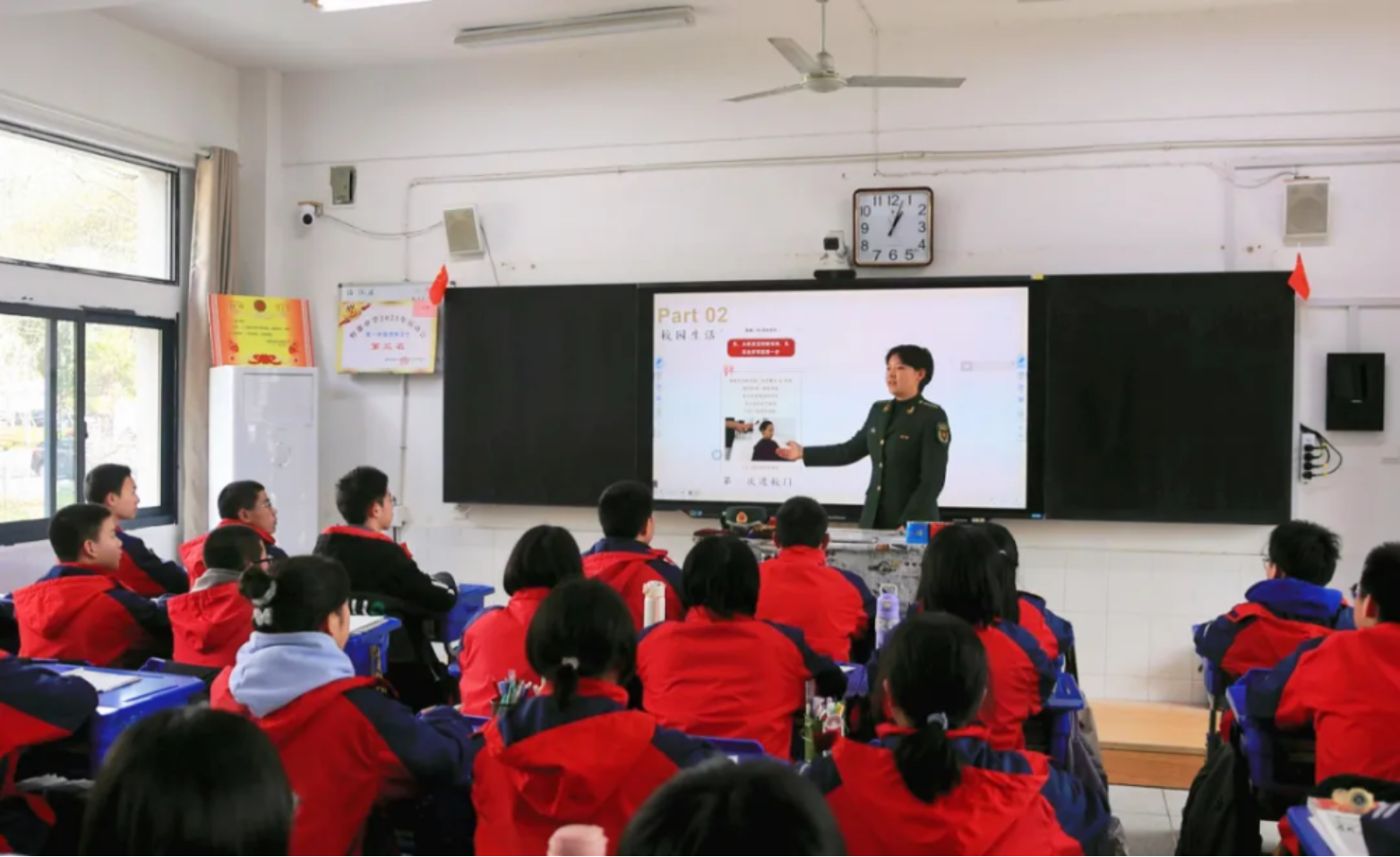 2024年春天,学员大队赴野寨中学开展“携笔从戎、矢志强军”主题宣讲活动。陈咨颖和战友作为优秀学员代表,来到野寨中学宣讲。教室里,同学们热切的目光一直追随着她和她身上的那身军装。