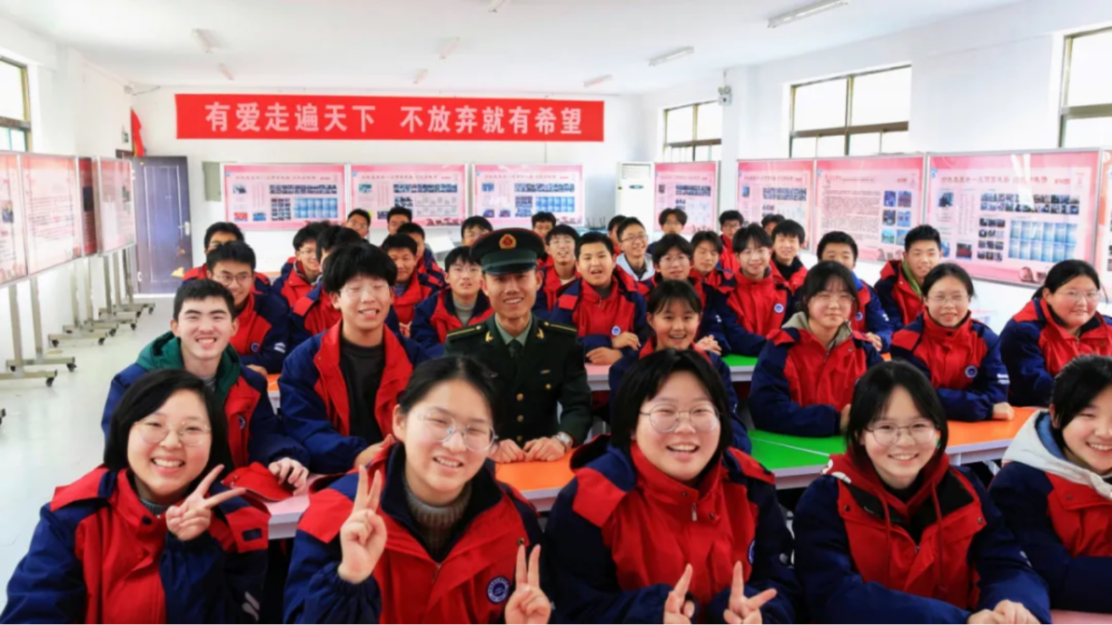 “感谢学长们对我们的关心照顾,我们一定努力学习,不辜负你们的期望……”一天教育课上,教导员张宇为学员们播放了野寨中学老师给大家传来的一段视频。视频中,一张张笑脸明媚灿烂。学生们举起收到的模型、文创和书信,向学员们表达感谢。