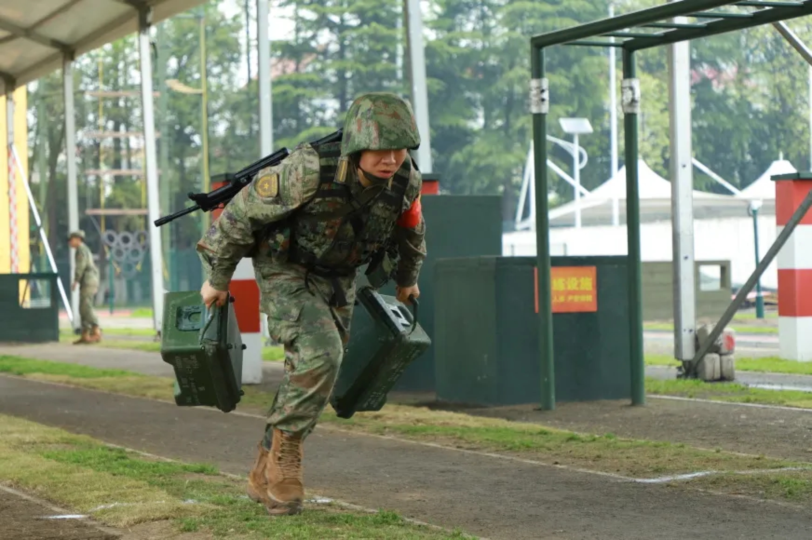 学员们迈开步子 全副武装