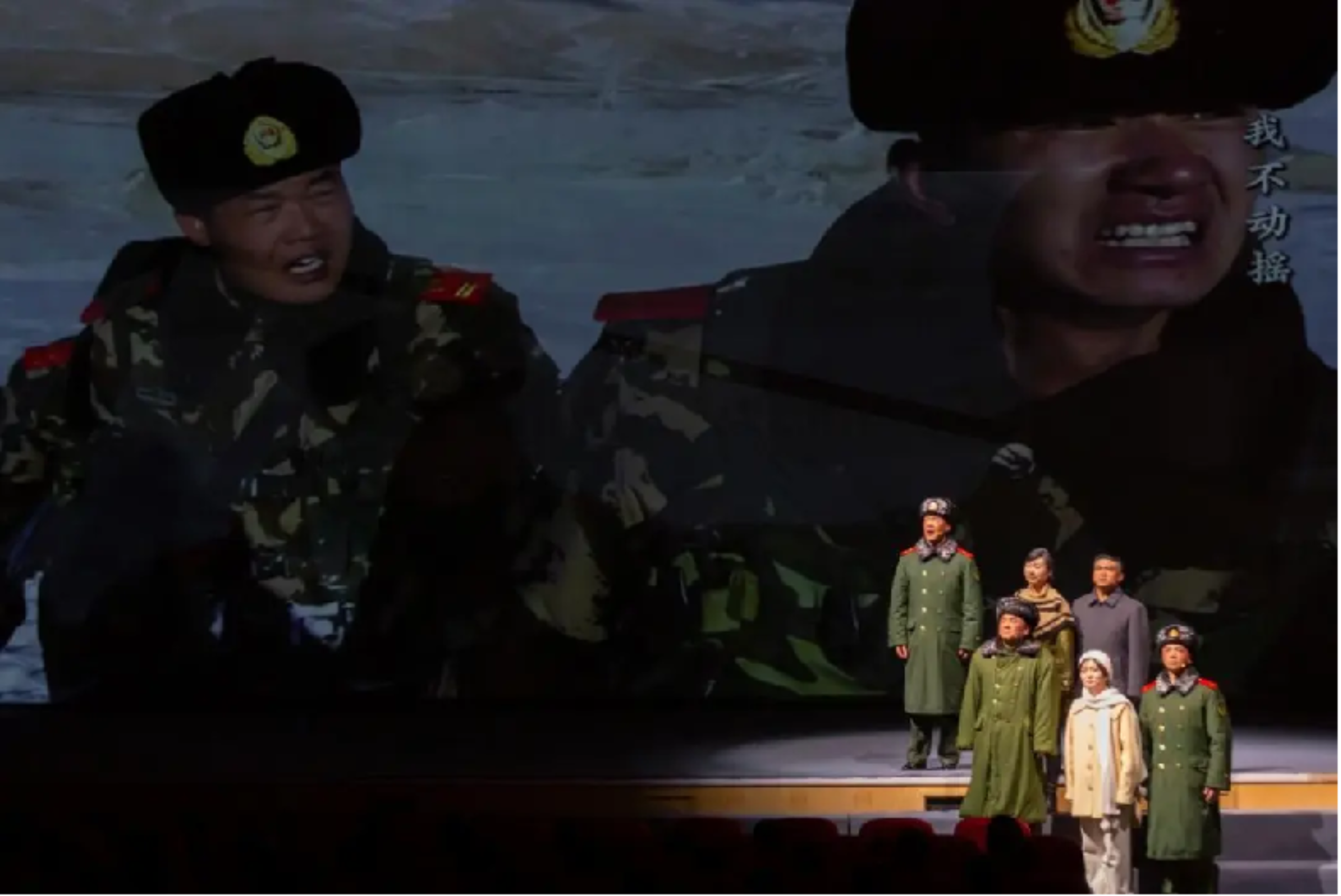 突然,舞台上风雪交加,授课人带领在场官兵来到了长年冰封、气候恶劣的昆仑山深处。