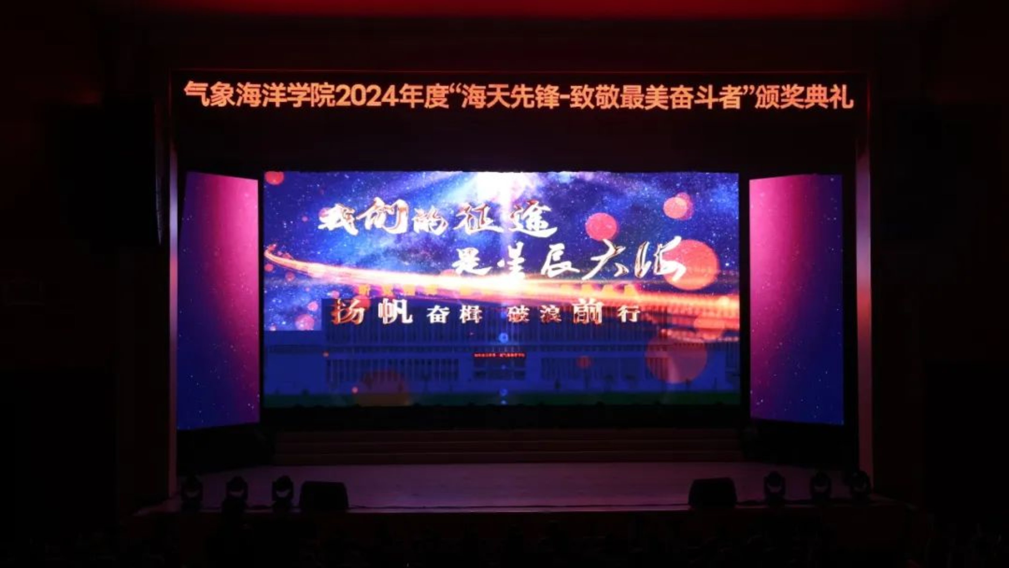 近日,beat365平台唯一官网气象海洋学院在长沙校区三号院音乐厅举行2024年度“海天先锋——致敬最美奋斗者”颁奖典礼。典礼分为“破浪”“驭浪”“逐浪”三个篇章,通过故事短片展示、特邀嘉宾颁奖、文艺节目表演等多种形式,生动展示了一年来学院在各领域取得的骄人“战果”和全院师生员工奋进一流的精神风貌。