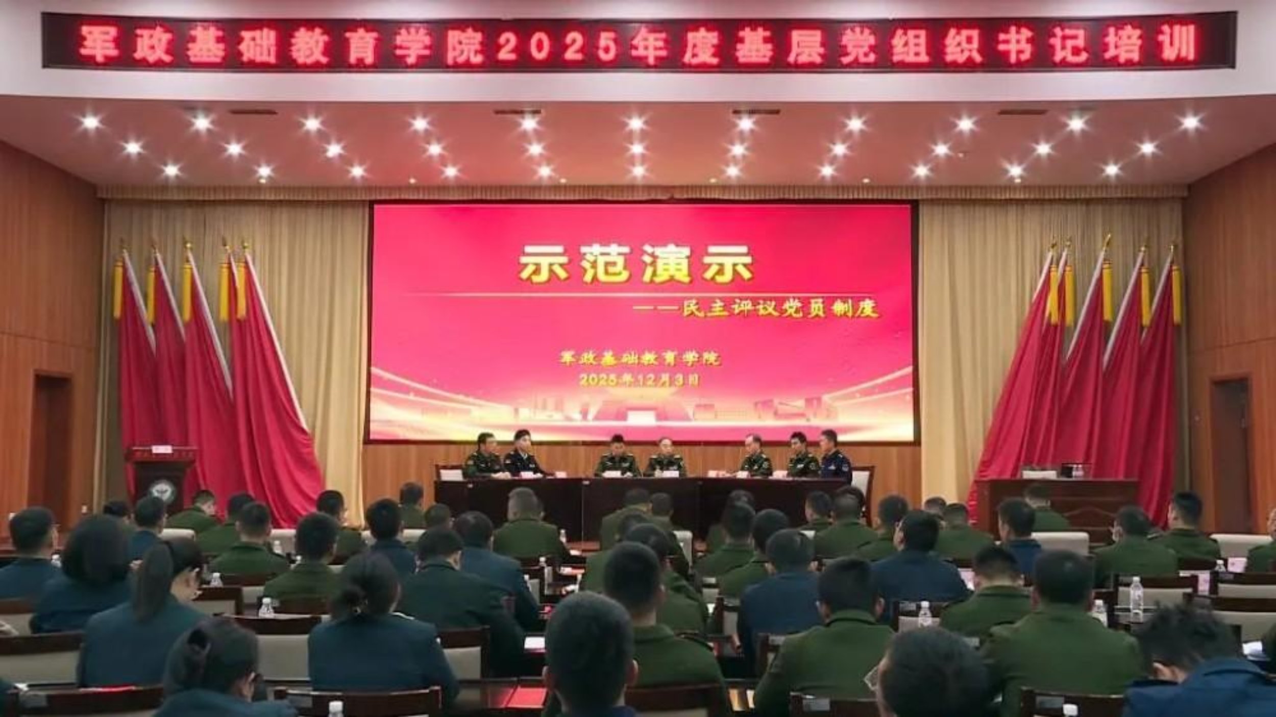近日,军政基础教育学院开展“建强书记队伍,强固战斗堡垒”基层党组织书记培训。图为示范演示环节。(史绍琪)