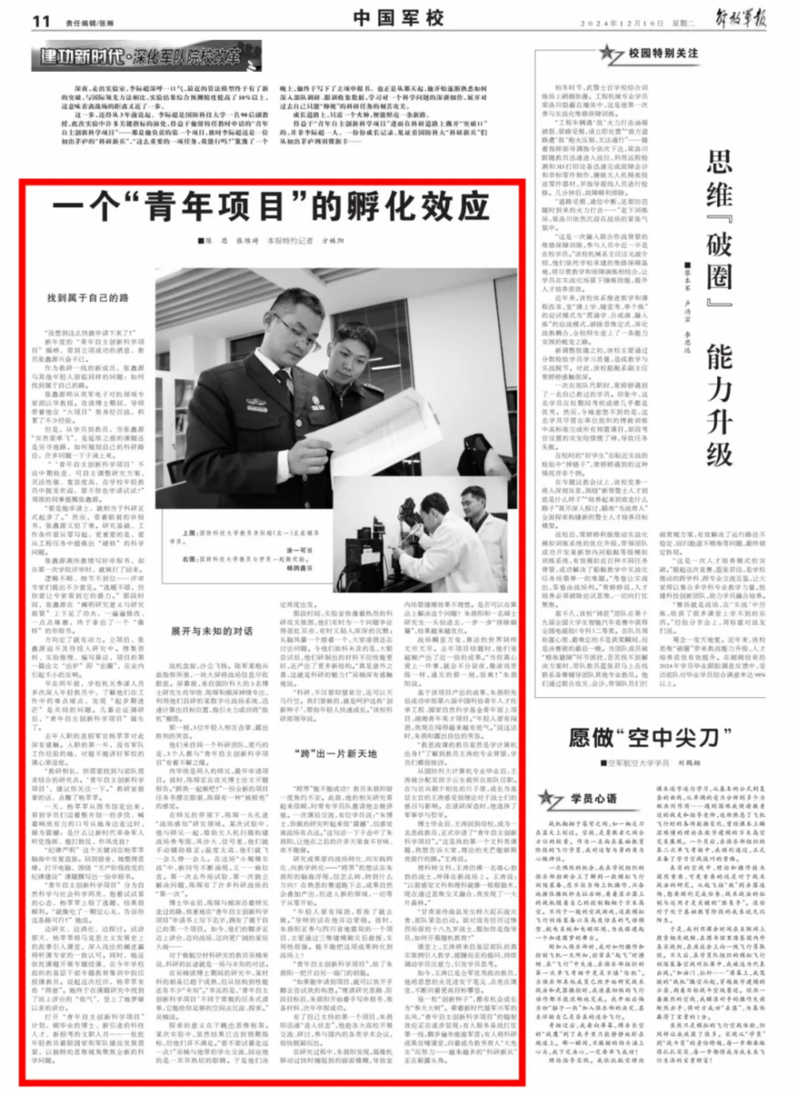 得益于“青年自主创新科学项目”进而在科研道路上撕开“突破口”的,并非李际超一人。一份份成长记录,见证着国防科大“科研新兵”们从初出茅庐到羽翼渐丰……