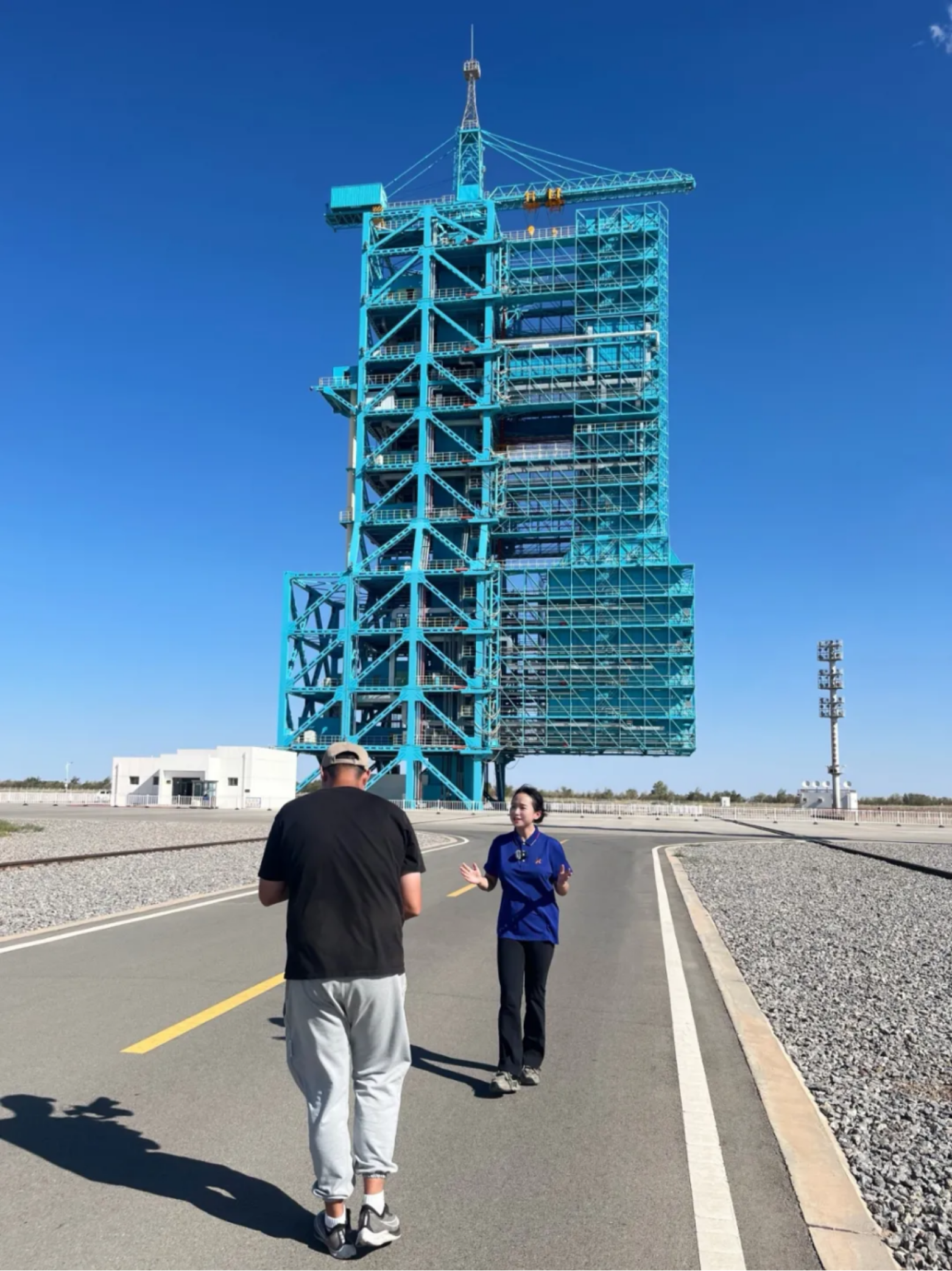 “大家请看,我身后这座蓝色塔架是我国目前唯一能够发射载人飞船的发射塔……”直播授课开始,“高地·拓天”大思政宣传队主播毛紫郦在载人航天发射场为观众讲解。“这座发射塔架是我国载人航天事业的功勋塔架,也是酒泉卫星发射中心最具标志性的建筑。从1999年神舟一号试验飞船到2025年神舟二十号载人飞船都在这里奔向太空,这座发射塔架见证了中国载人航天的历史……”跟随主播,观众了解了我国载人航天发射任务中几次标志性的事件。
