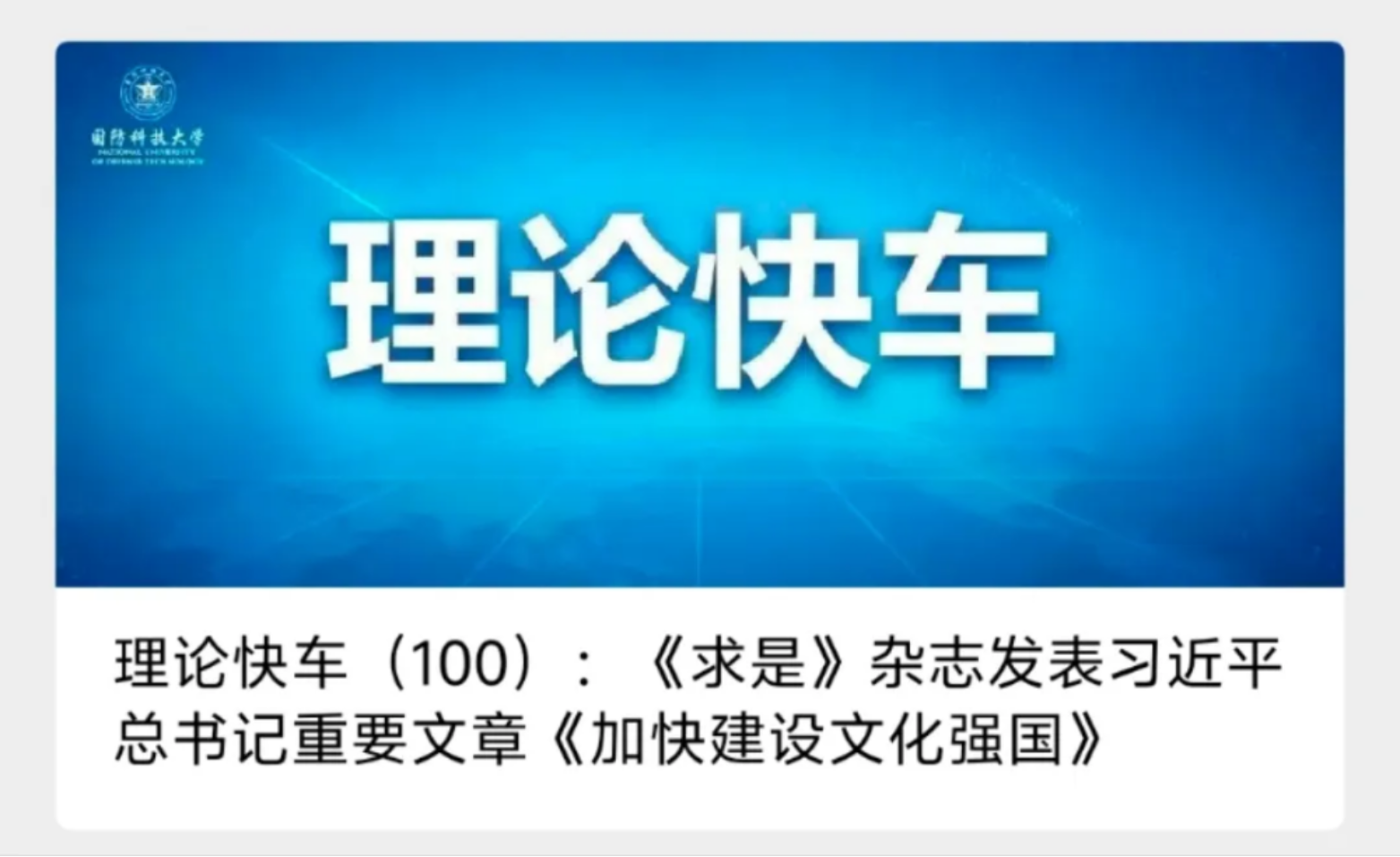 行而不辍,岁月可期。“理论快车”百期历程,铭刻着科大人的信仰担当,凝结着高地人的拳拳之心,激荡着军校人的无悔誓言。新征程上,我们将始终紧跟理论创新步伐,继续高擎火炬,书写高地逐梦、铸魂育人新篇章!(执笔:何涌吕超)