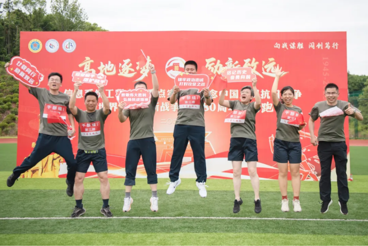 近日,系统工程学院某实验室组织了一场以“高地逐梦 励新致远”为主题的纪念中国人民抗日战争暨世界反法西斯战争胜利80周年80公里接力跑活动。图为部分参赛队员合影。(袁雪美、刘俊先)