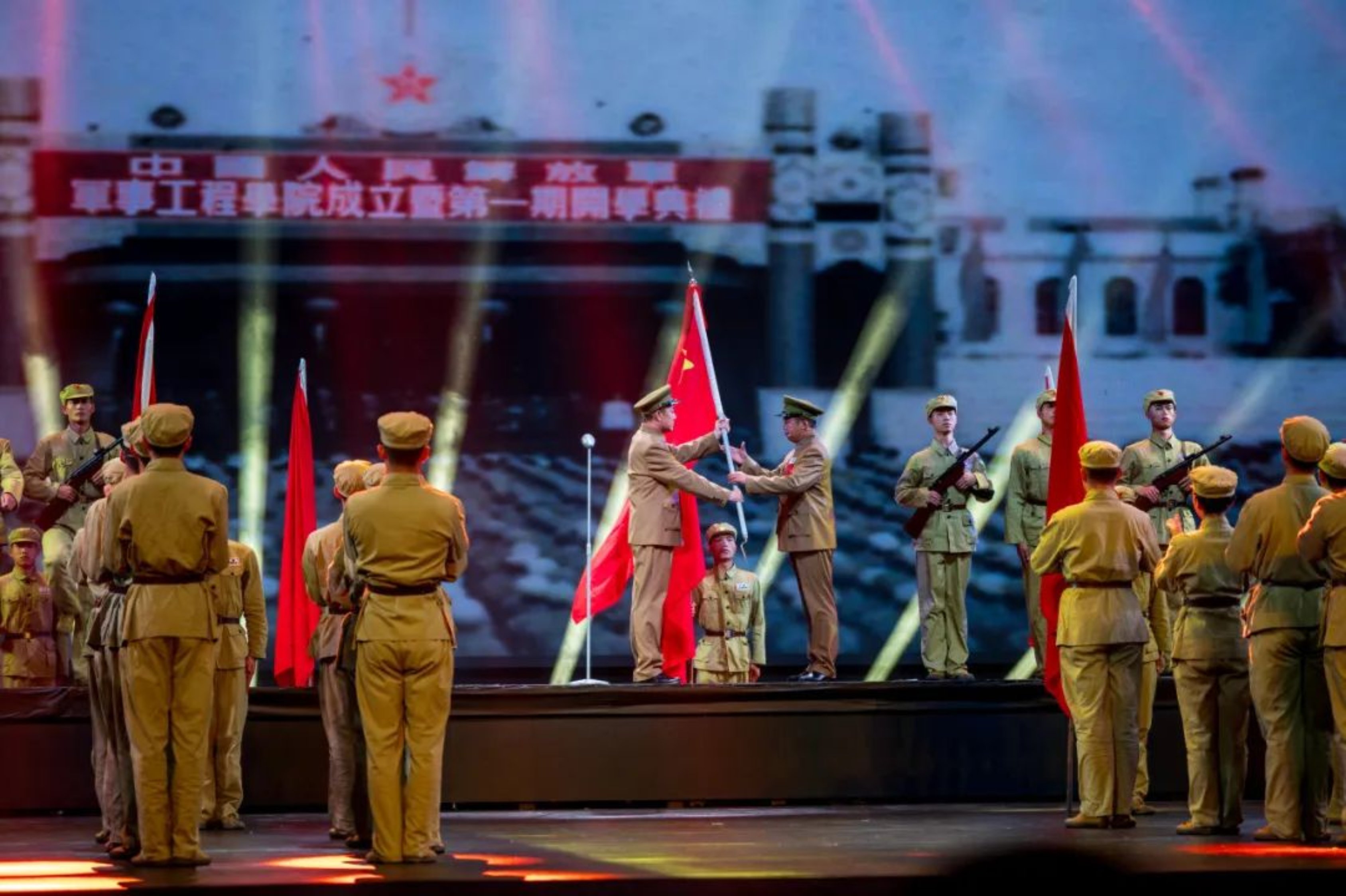 歌舞《永志不忘》接续燃情岁月,艺术呈现了师生在旗帜引领下,从天南海北奔赴北国冰城,改建分建和主体南迁时的义无反顾;军乐演奏《战歌嘹亮》演绎三首不同年代的战斗曲目,让在座每一位都热血沸腾、斗志昂扬。