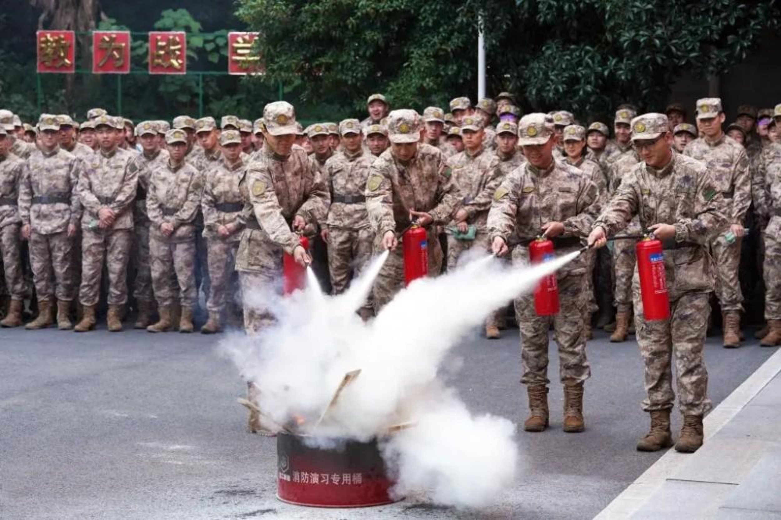 为筑牢消防安全防线,强化安全防范意识。近日,智能科学学院组织师生员工进行消防安全灭火与疏散应急演练。图为学习灭火器使用方法。(张晨希、贺稷清)