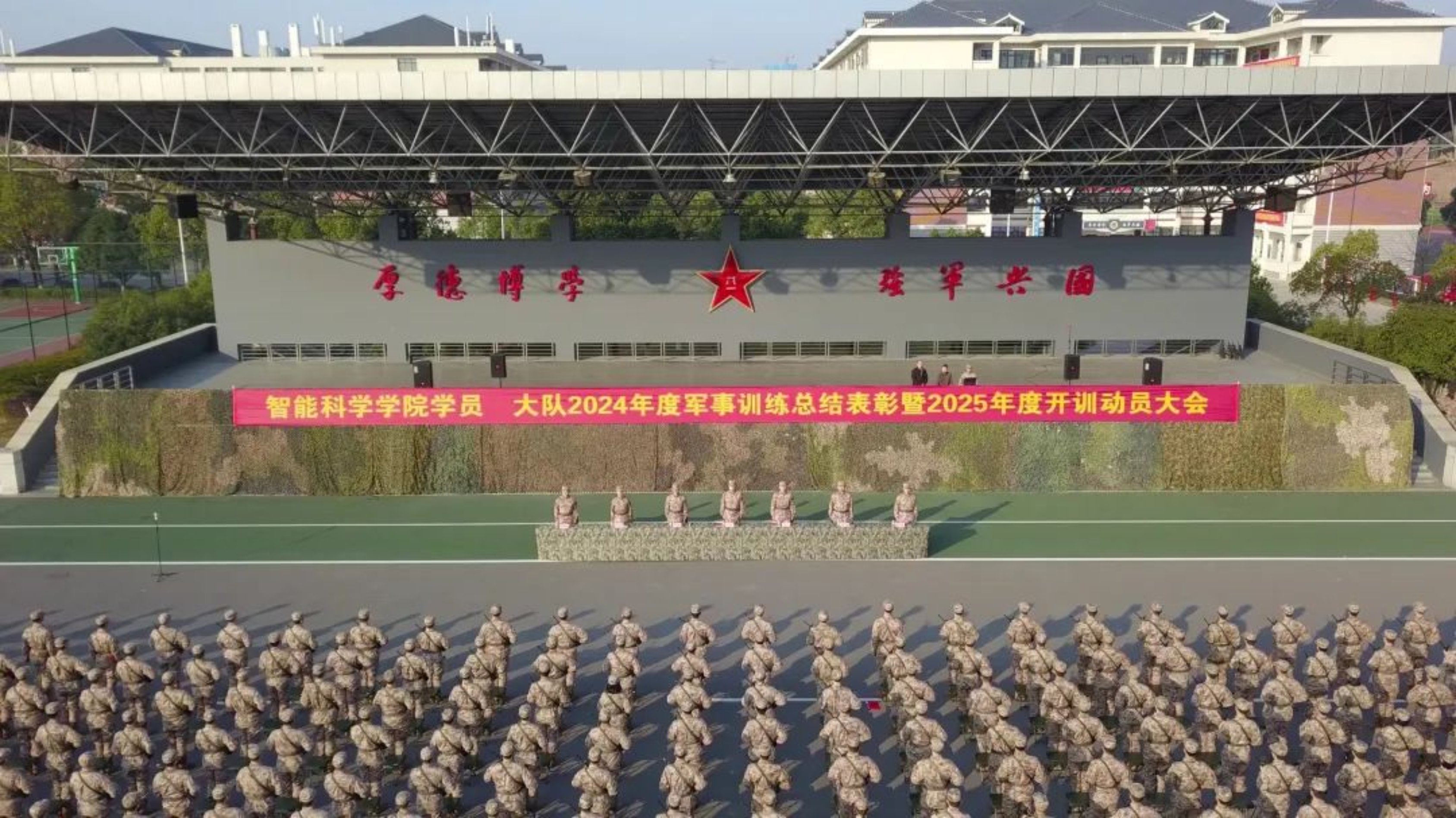 新年伊始,智能科学学院在长沙校区三号院举行2024年度军事训练总结暨2025年度开训动员大会,大会在嘹亮的军歌声中开始,现场战味十足,硝烟弥漫,全体官兵精神饱满,斗志昂扬。下面请跟随我们的脚步一起来看一下吧。