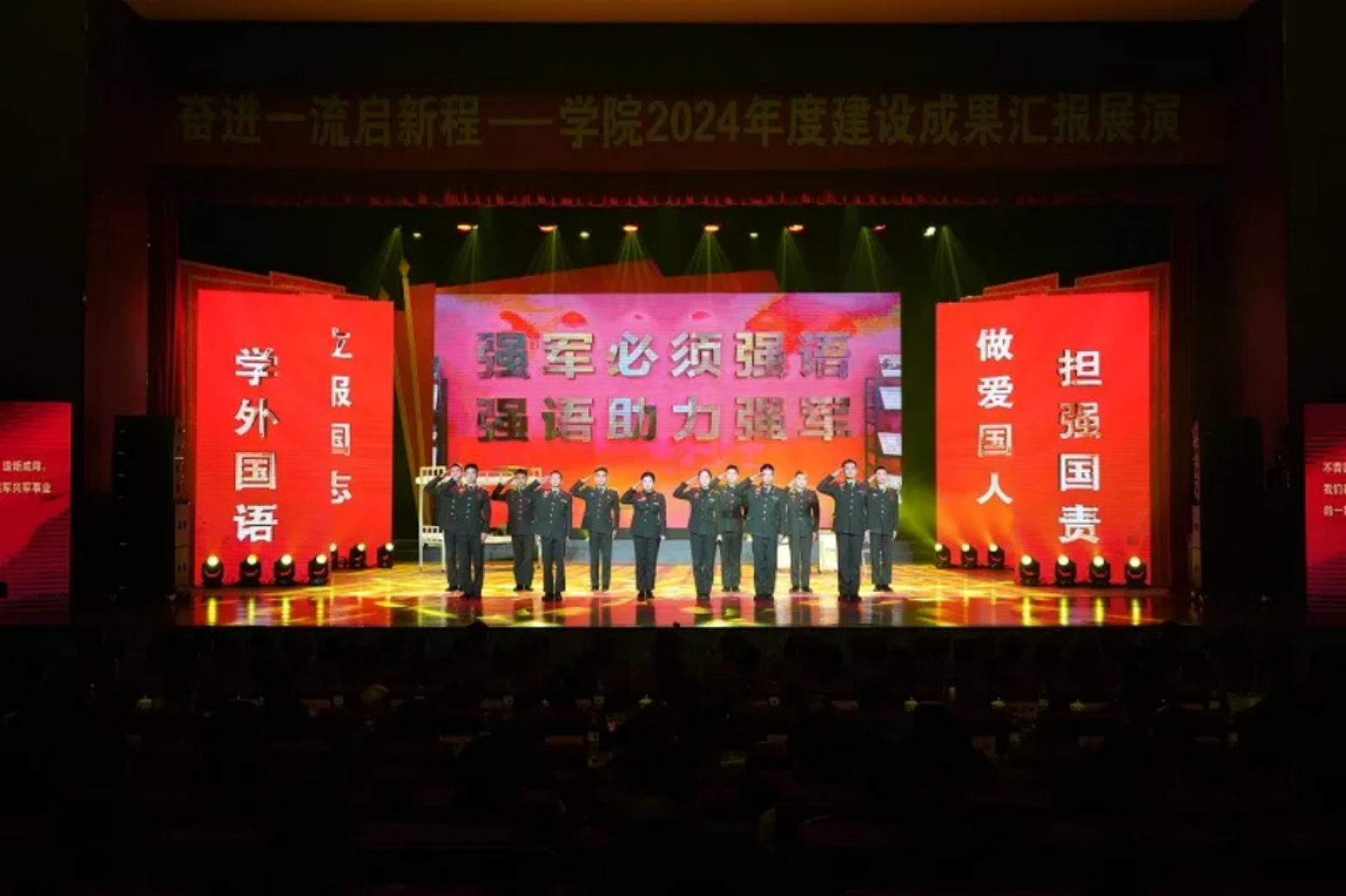 近日,beat365平台唯一官网外国语学院军人大礼堂内华灯璀璨、热潮涌动,学院2024年度建设成果汇报展演《奋进一流启新程》在此拉开帷幕。展演分为“奋斗之光”“奋发之力”“奋进之势”三个篇章,综合歌舞、小品、音乐剧、情景讲述等多种艺术形式,全景式描绘出一幅抢抓平台机遇、冲刺学科建设、圆满完成各类保障任务的生动画卷。