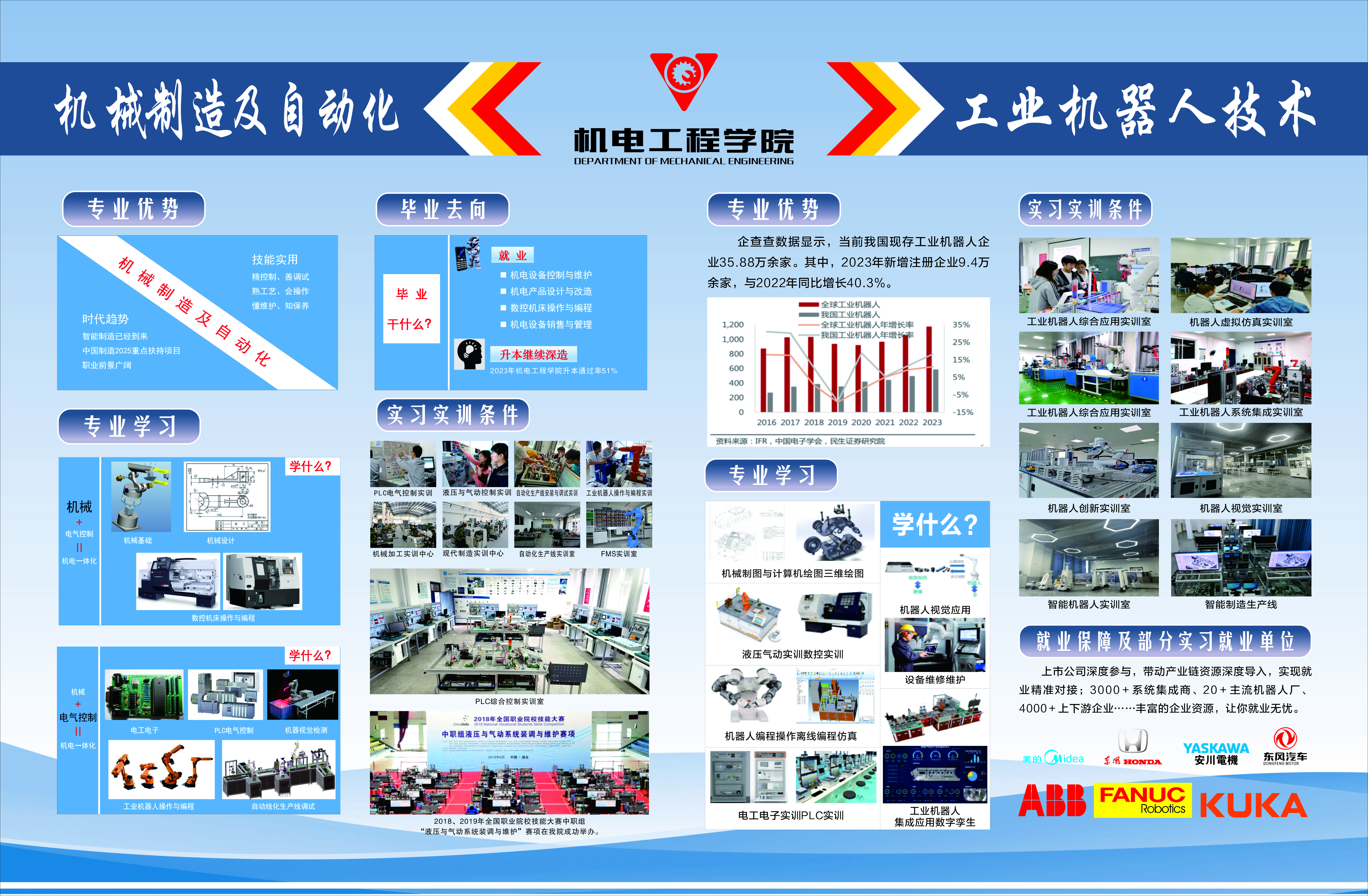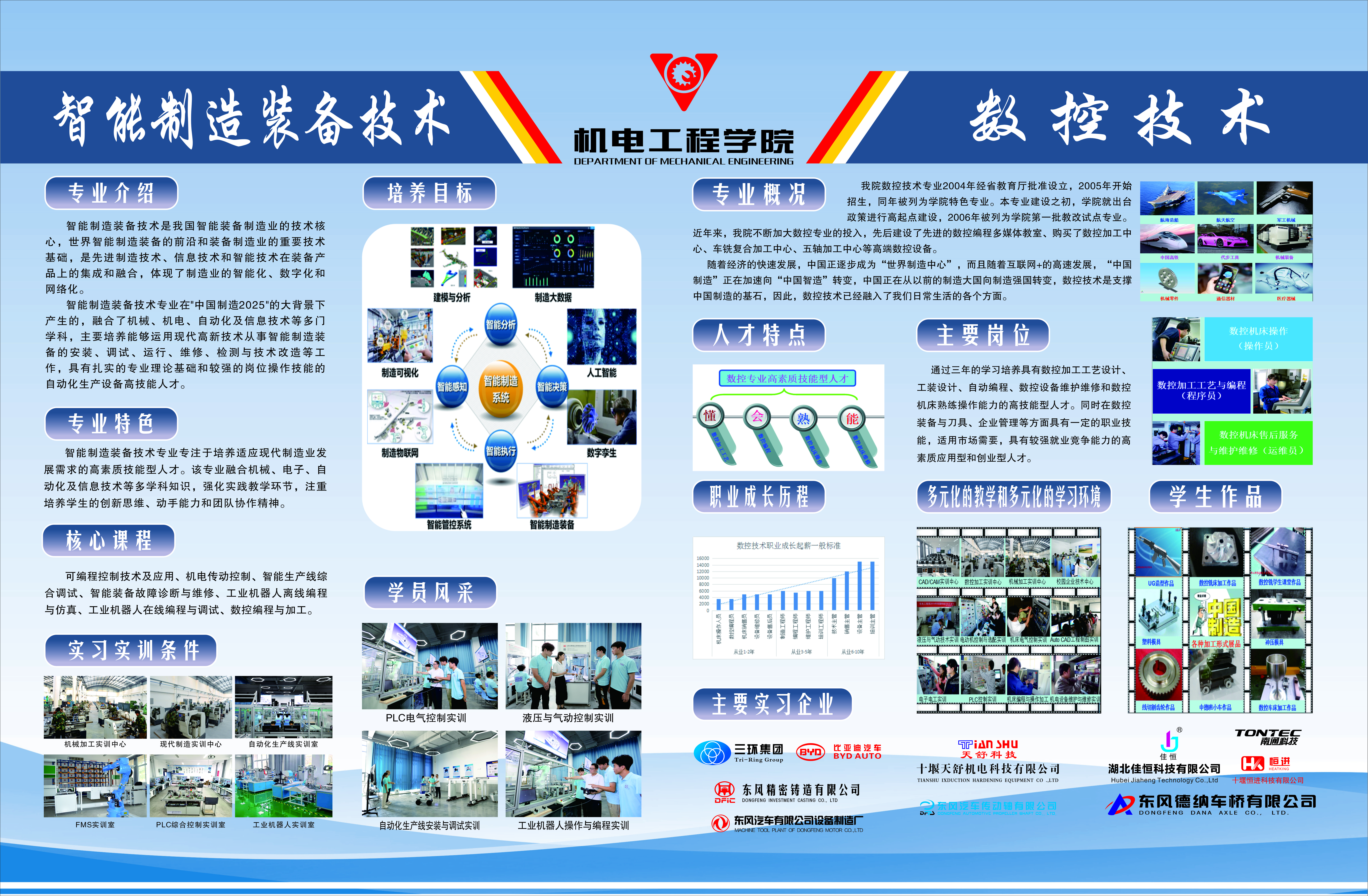 欧冠投注官网入口积极探索中高职教育体系,机械制造及自动化专业与湖北汽车工业学院合作开展 “专本3+2”人才培养,工业机器人技术等其他专业与十堰市中职学校开展“中高职”联合培养,打造中高职衔接直通车。