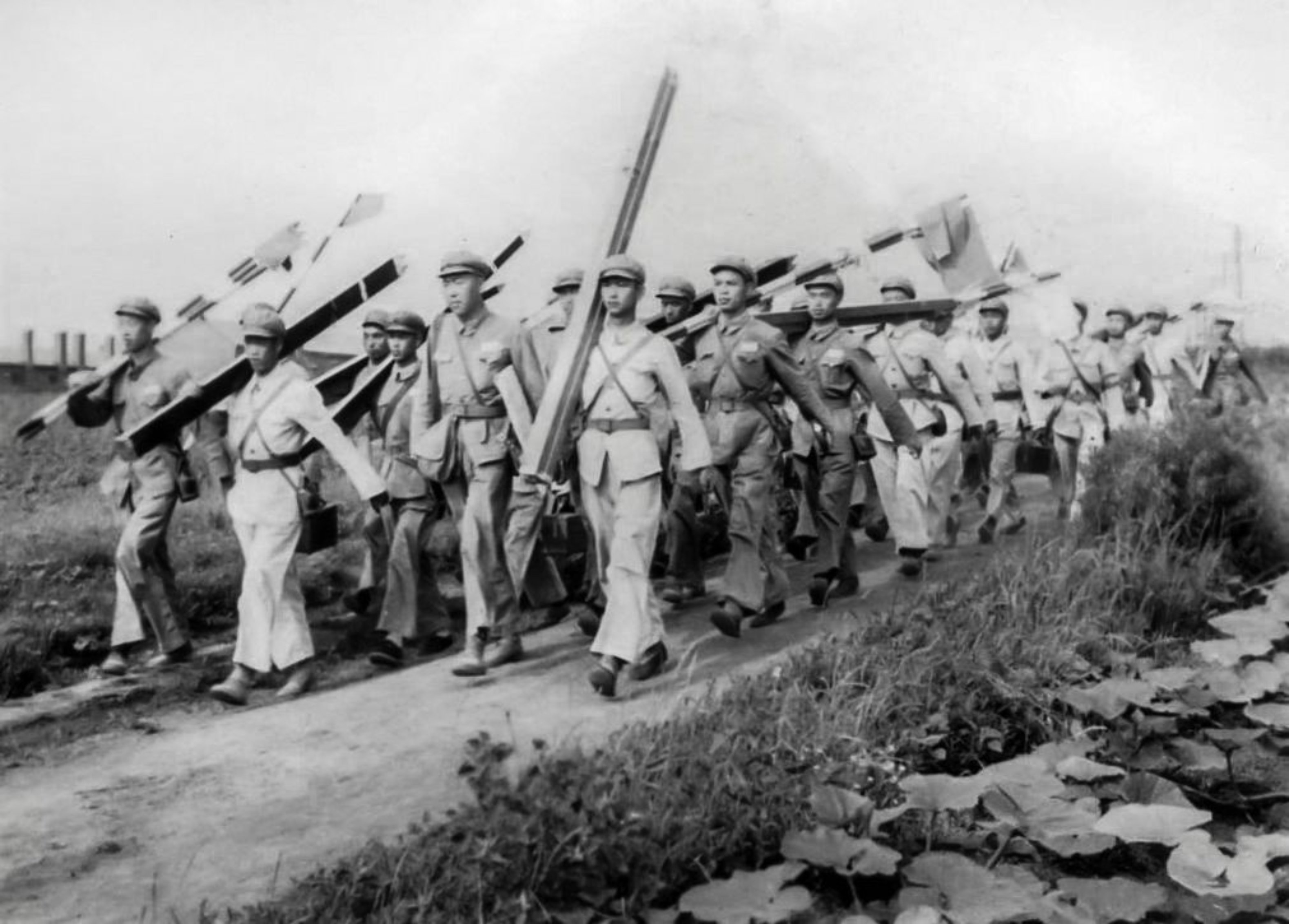 ▲1954年,工程兵工程系学员整队出发开展野外实习