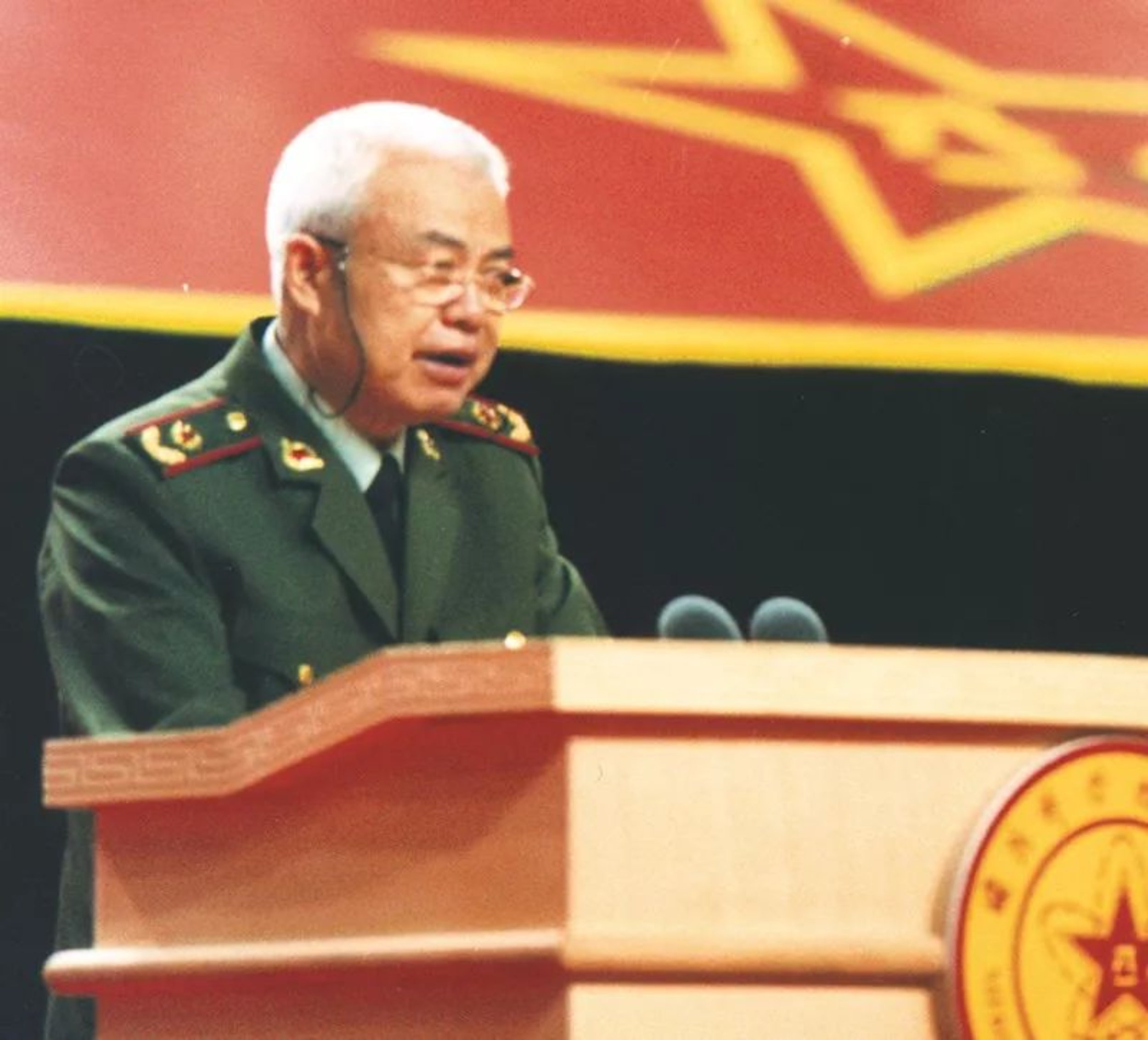 ▲钱七虎在国防科大建校50周年庆祝大会上发言