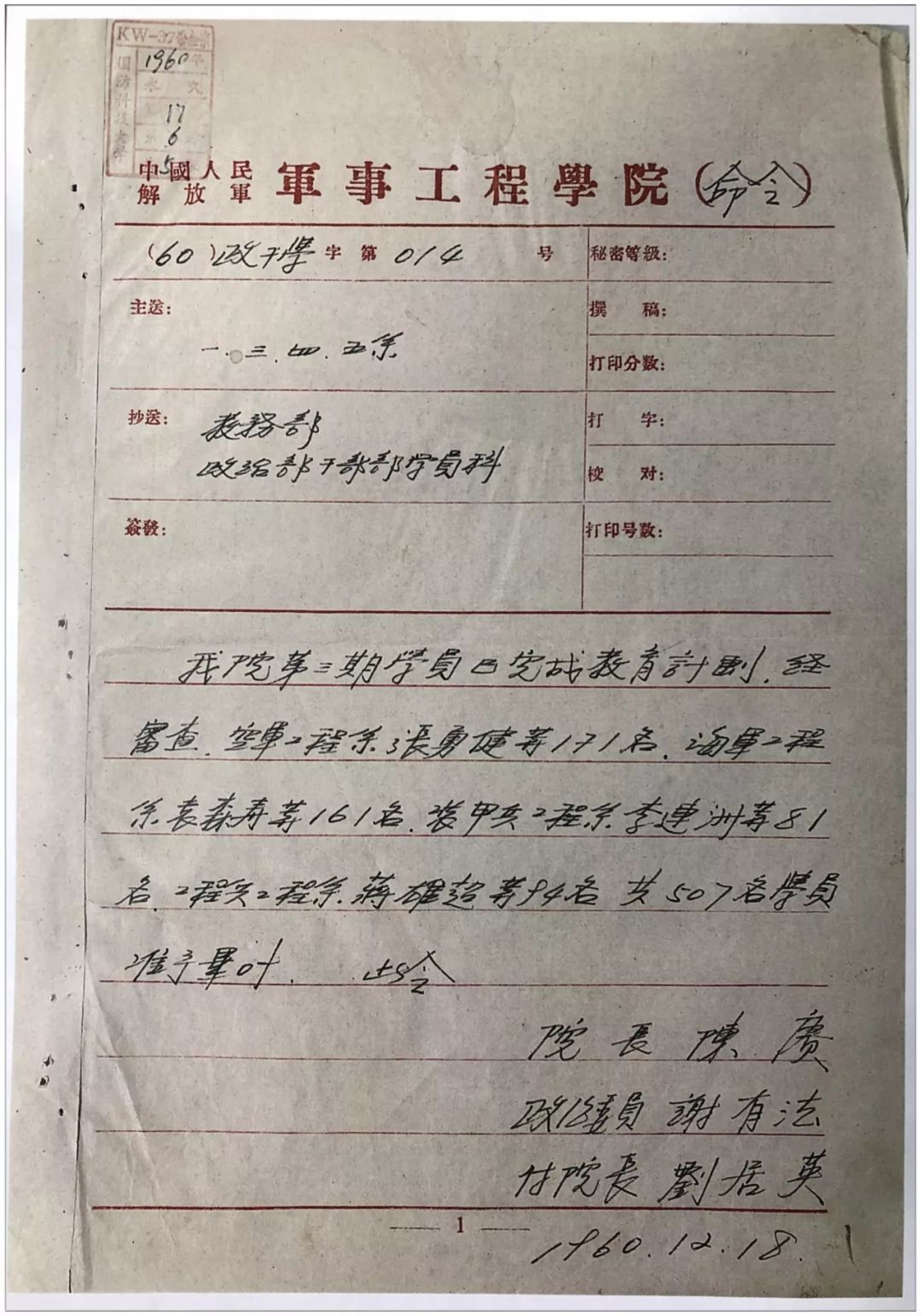 ▲哈军工1960届毕业命令