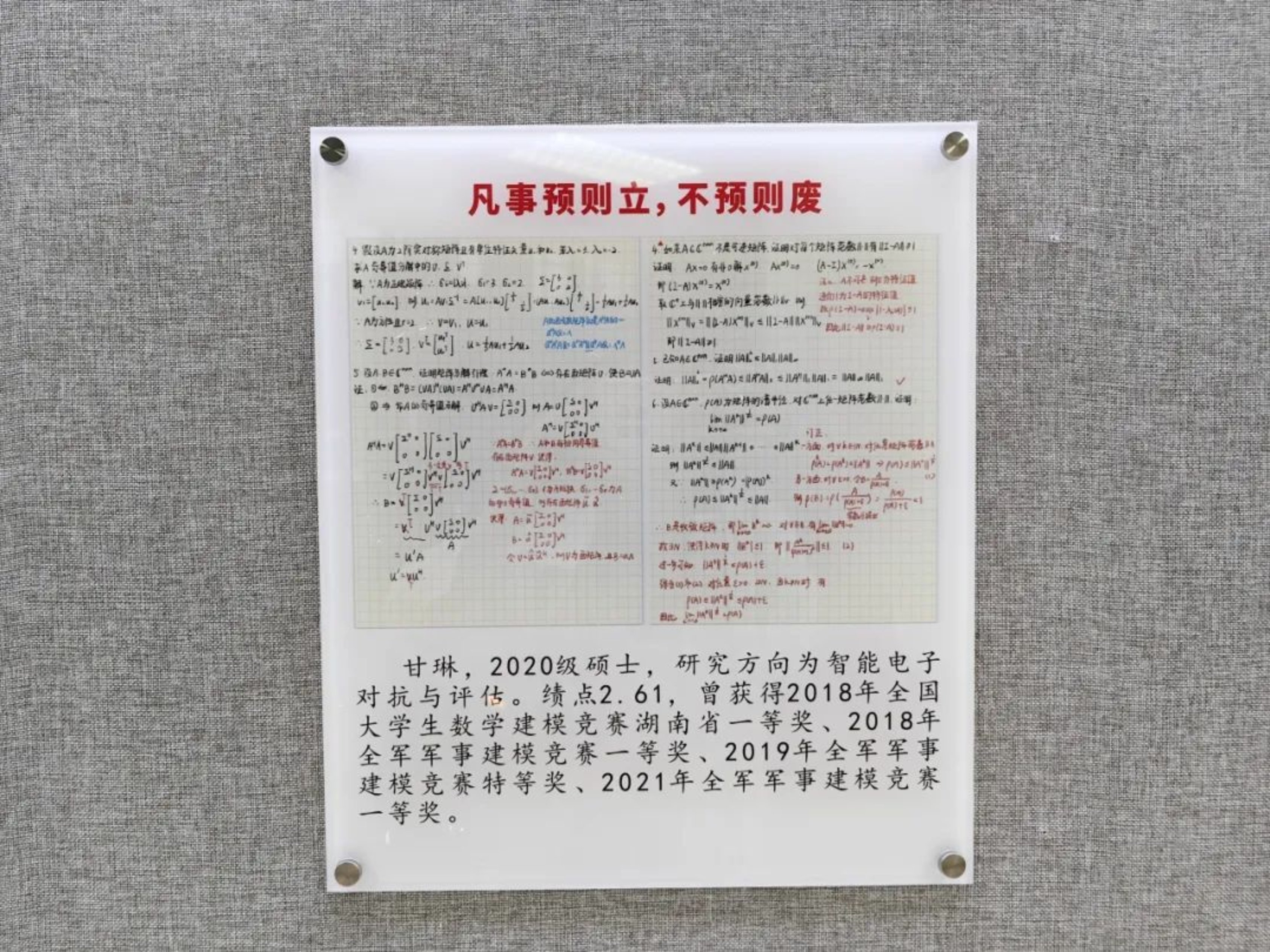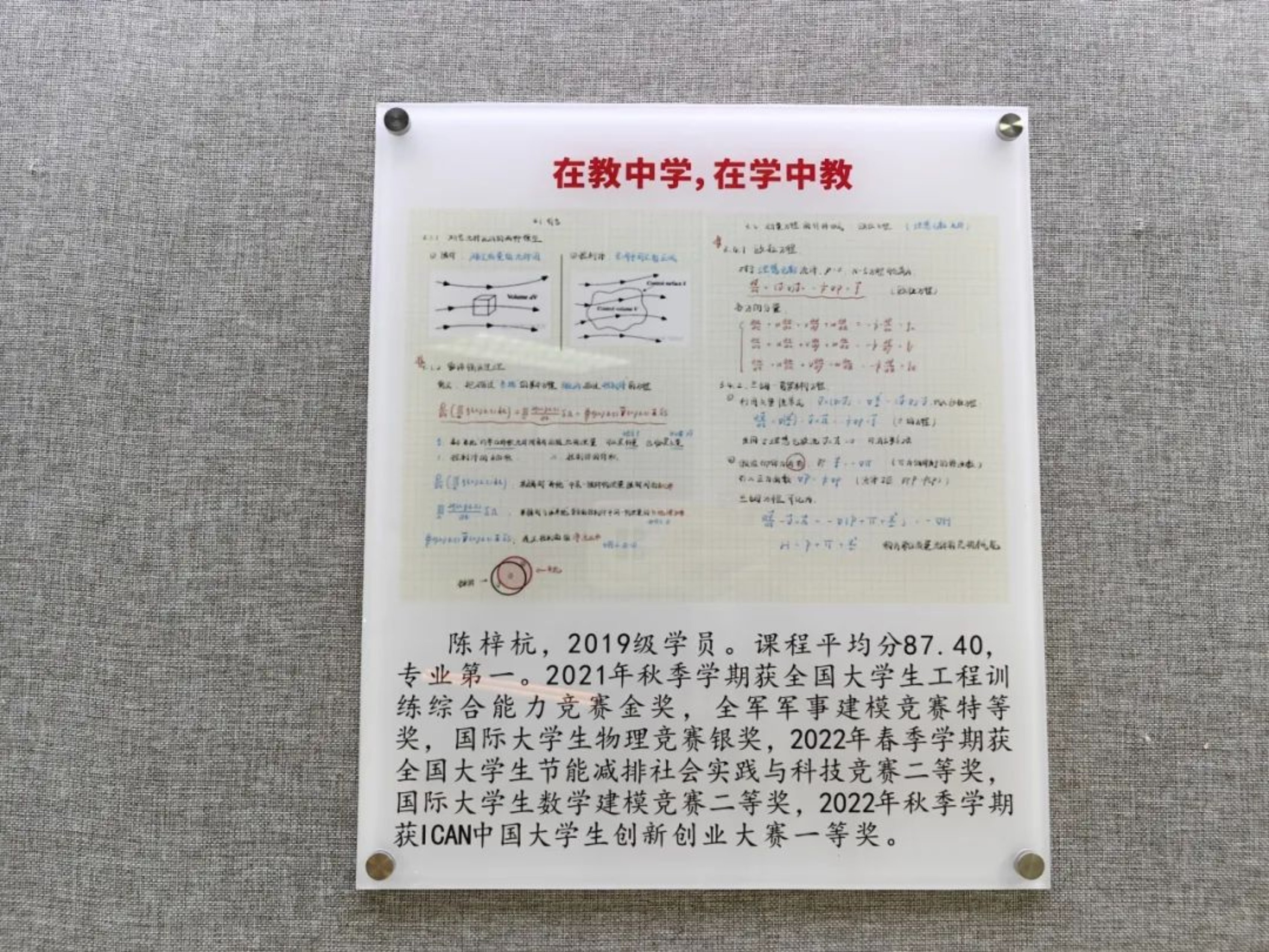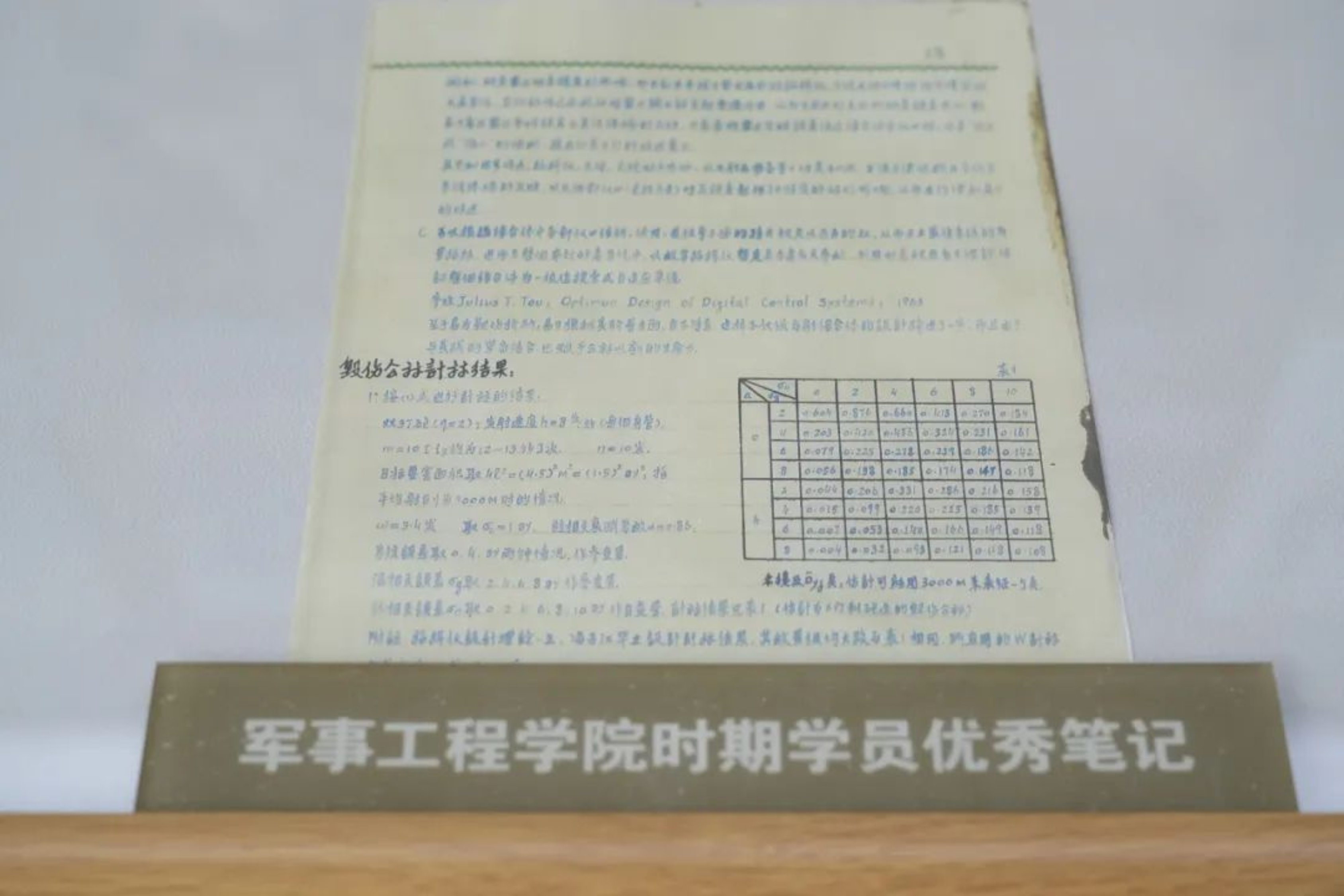 在教学楼上课的学员李国瑞,课余时看到中厅所展出的“哈军工”时期优秀教员备课手记与讲义,感慨万千:“大学之大,不在于有高楼而在于有大师。自军事工程学院时,陈赓院长便提出‘善之本为教,教之本在师’,凸显出‘教’字的意义,从全国选调了62位专家顾问来到学校帮助建设。看到这些如印刷体似的手写讲义与笔记,深刻感受到了那时老师们严谨的教风和辛勤的付出。”