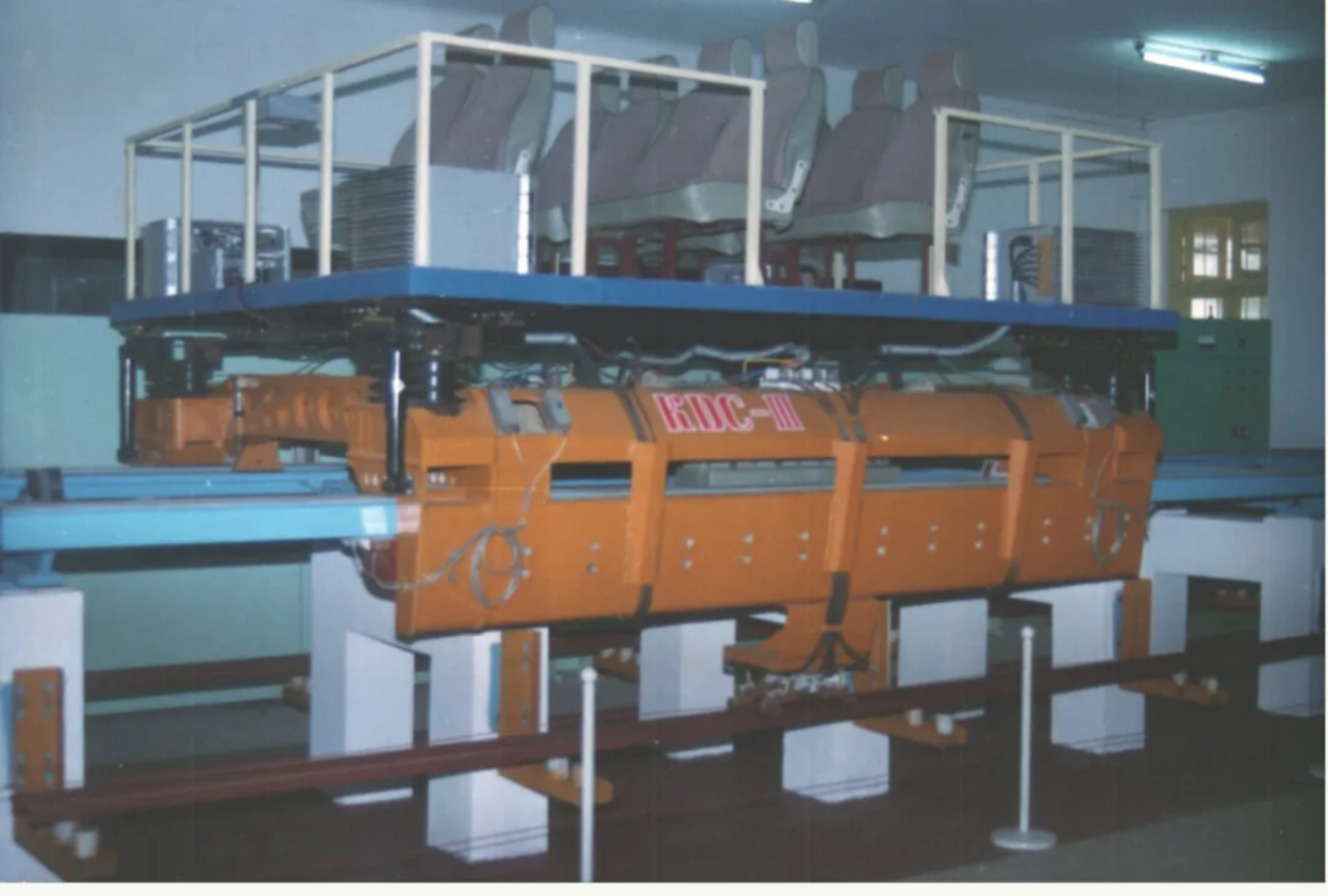 1995年5月11日,我国第一台载人磁浮单转向架系统在学校诞生了,它解决了悬浮控制、转向架设计、牵引控制等磁浮列车研制最基础的技术难题,为今后我国研制具有自主知识产权的磁浮列车奠定了坚实基础,该成果被评为当年中国十大科技进展。