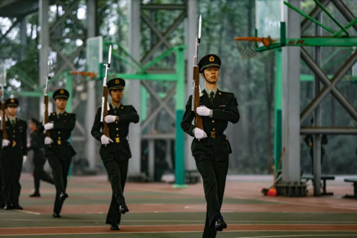 赛场上,选手们军容严整,动作干脆彰显蓬勃朝气。“标兵就位——”身影重叠,昂首阔步,仪仗队员整齐划一,英姿尽显。
