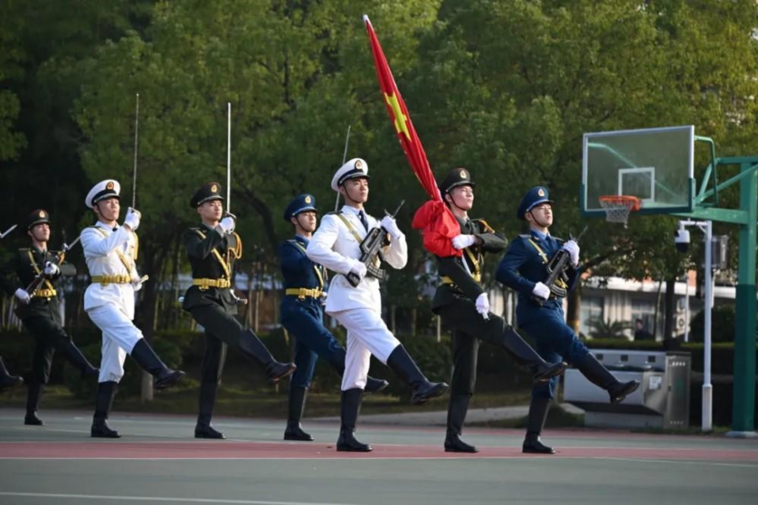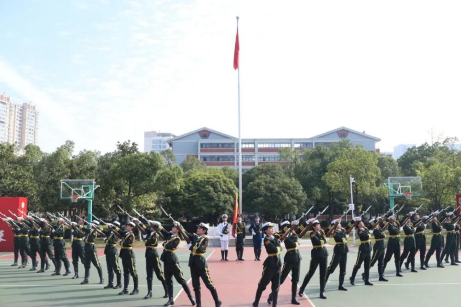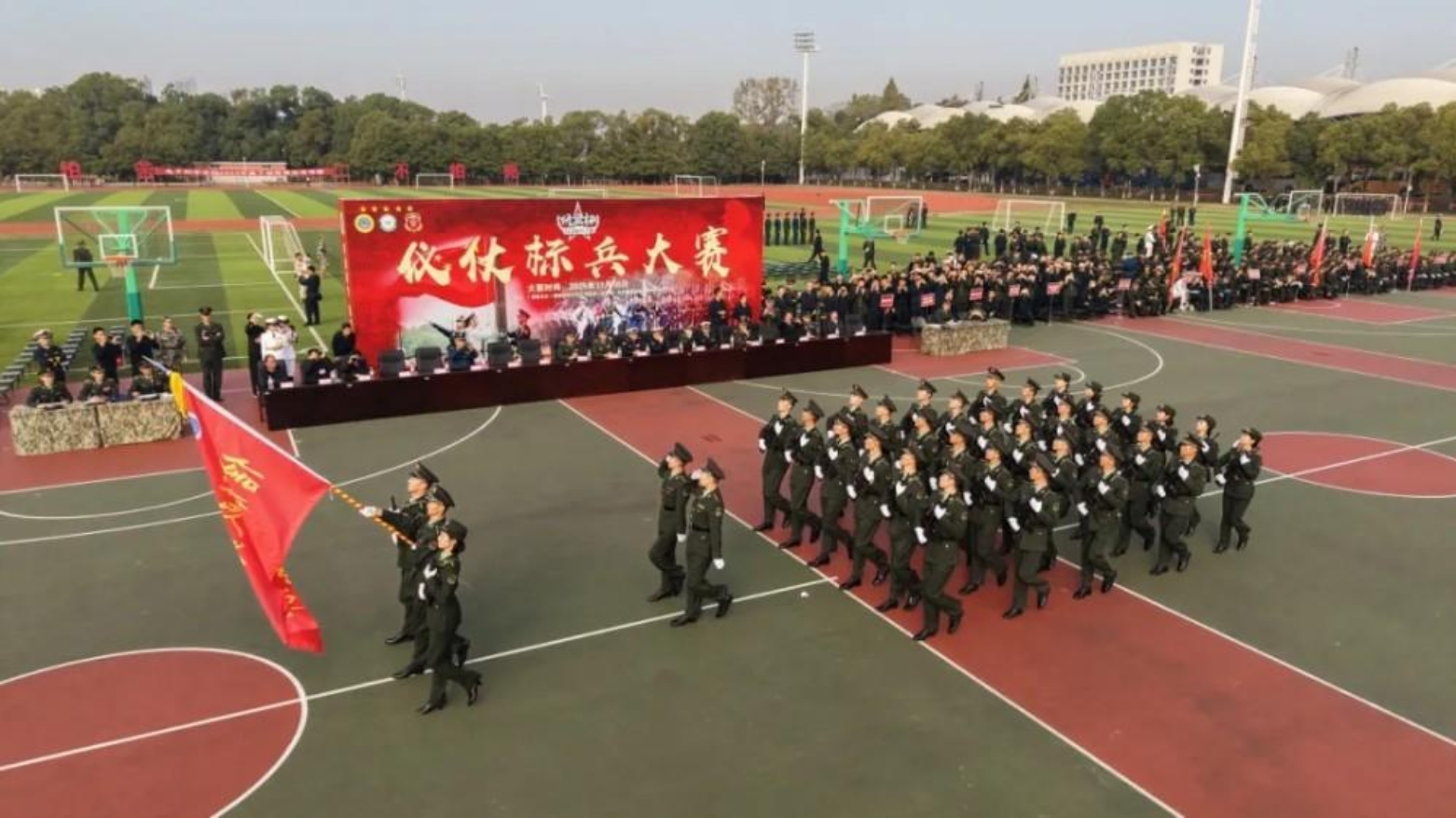 旌旗猎猎,步履铿锵!近日,第七届“风采杯”仪仗标兵大赛在长沙校区三号院启幕。