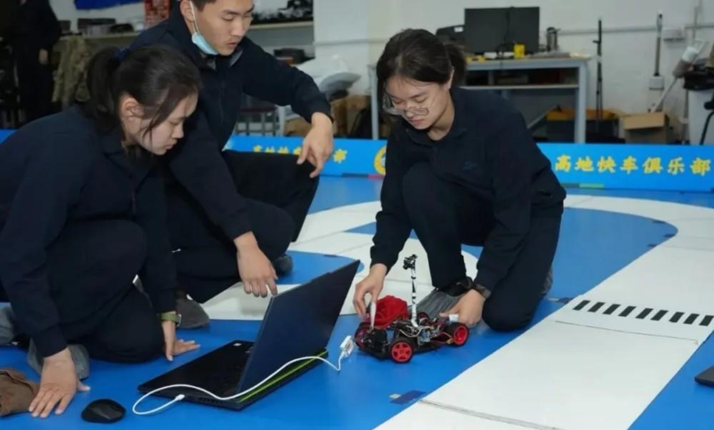 “高地快车” 智能车俱乐部的一辆辆智能车凭借精准算法与稳定操控飞驰竞速。车轮呼啸间,成员们将理论知识化作赛道上的澎湃动能,尽显智能领域的青春锋芒。