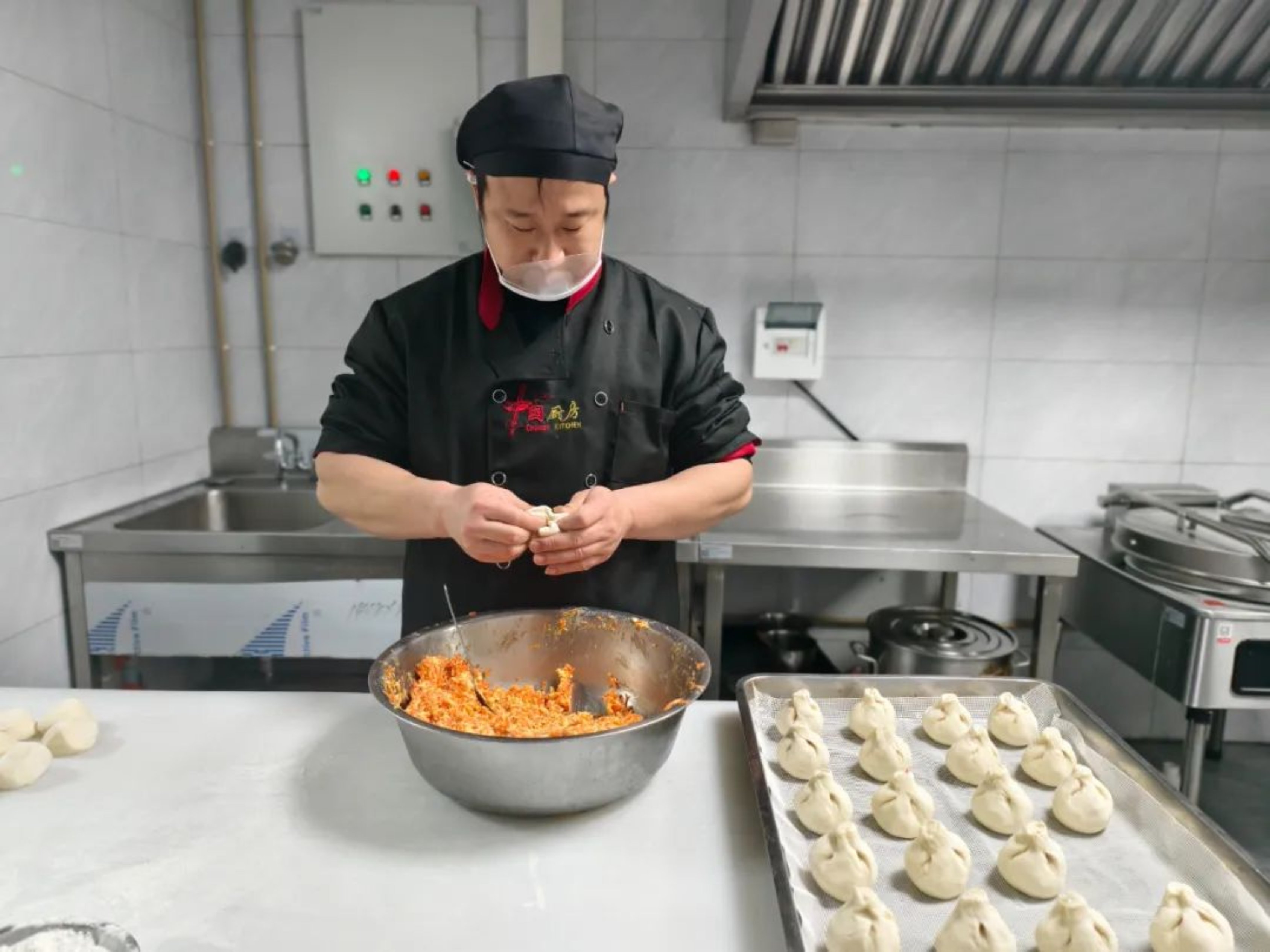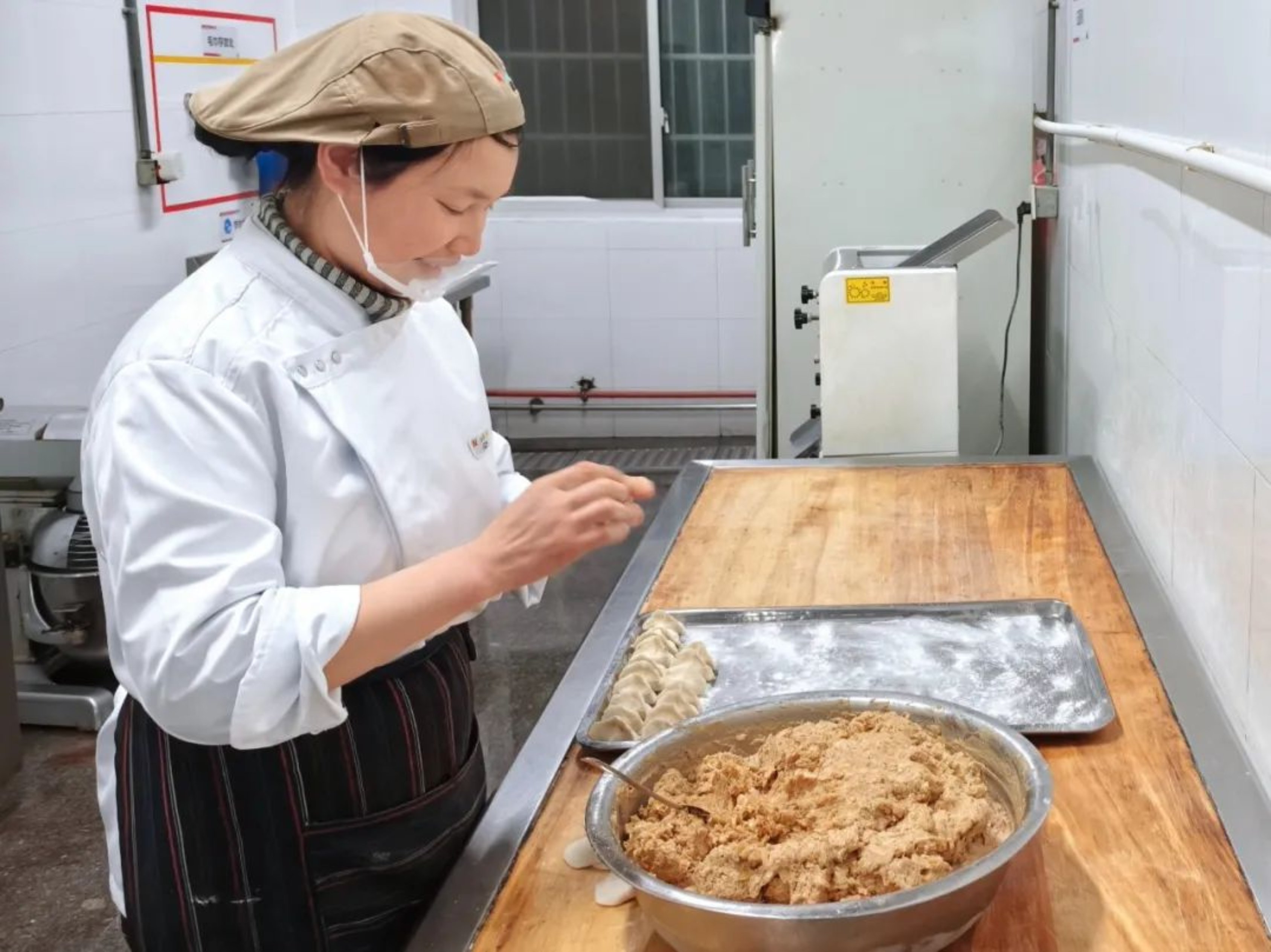 周汉仁从业30余年,极为擅长馅料,凭借多年手感能精准把握调味料的用量。他通过日复一日地和面、绞肉、做馅、煎制,各工序精益求精,所制馅饼深受全校师生喜欢。