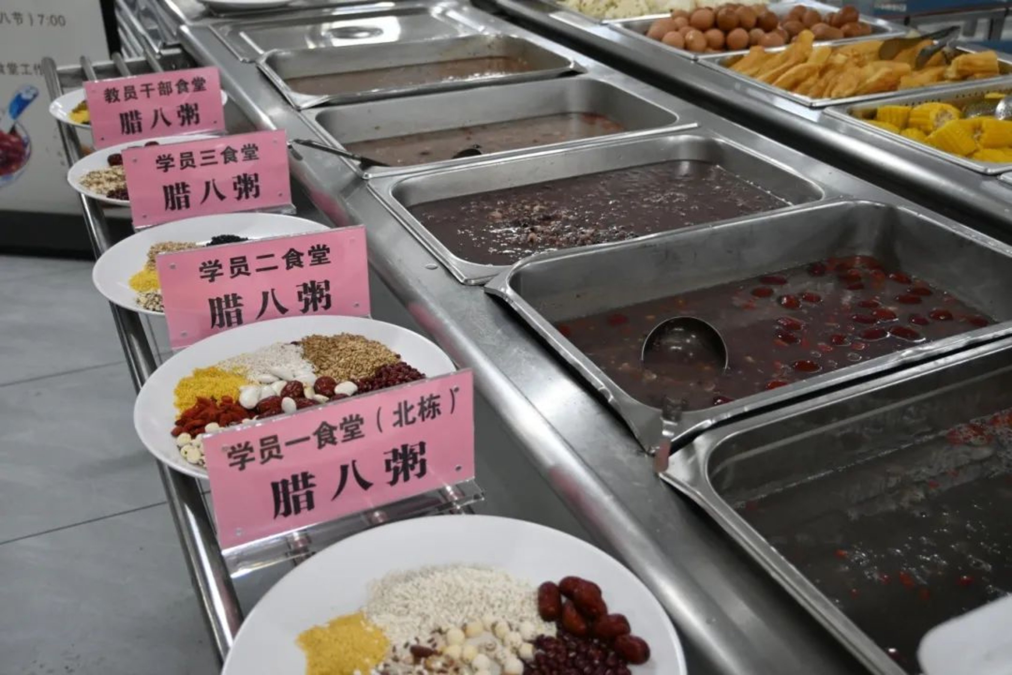 小米的金黄、花生的饱满、红豆的绵密、红枣的甜润,经时间的熬煮,化作甜软糯的腊八粥。轻抿一口,甜蜜在舌尖跳跃,温润于喉间舒展,暖意在周身弥漫,寒意顿消。在谁是粥王的比赛中,一号院二食堂李斌、三号院教员干部餐厅张洋夺得桂冠。