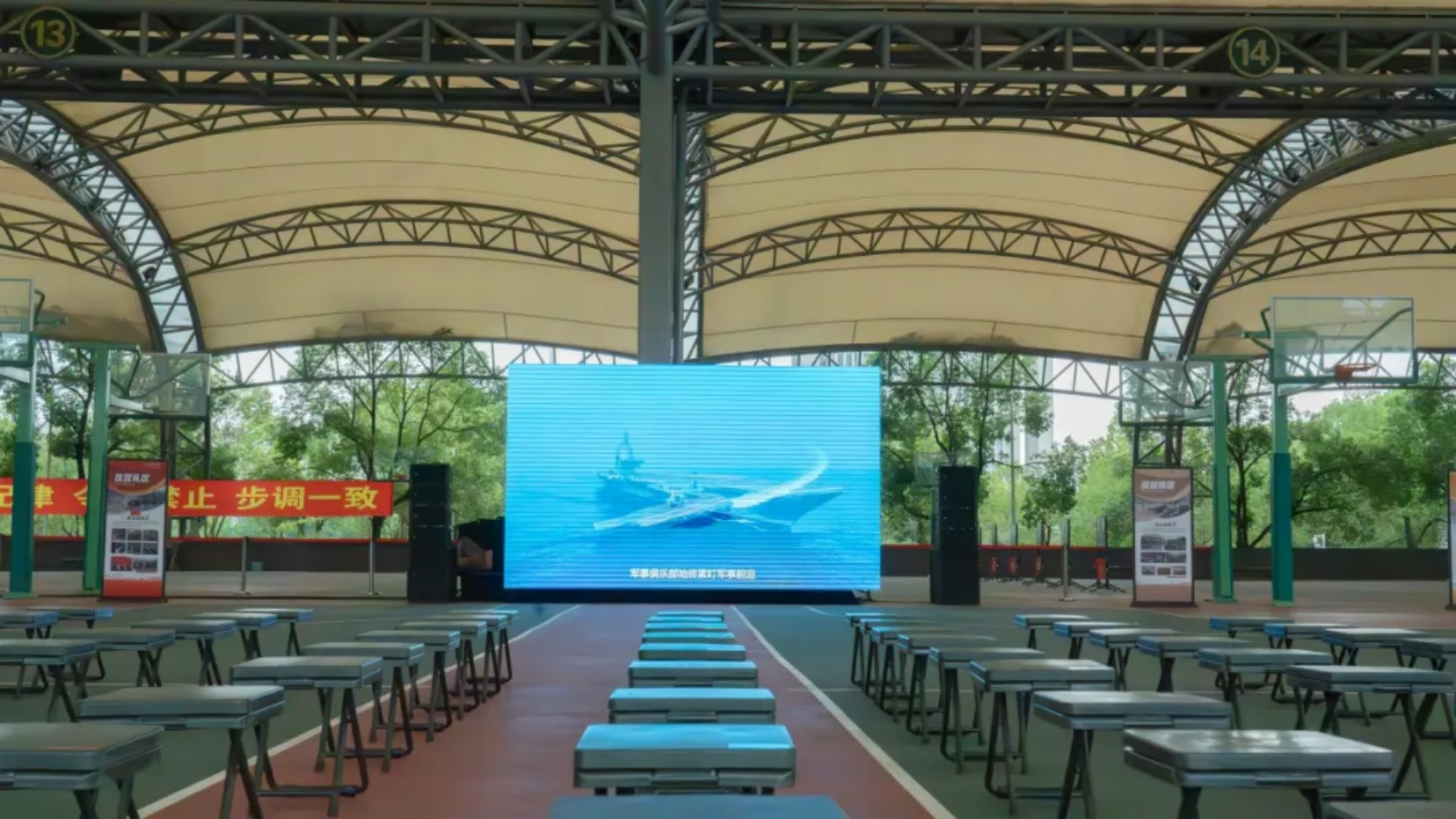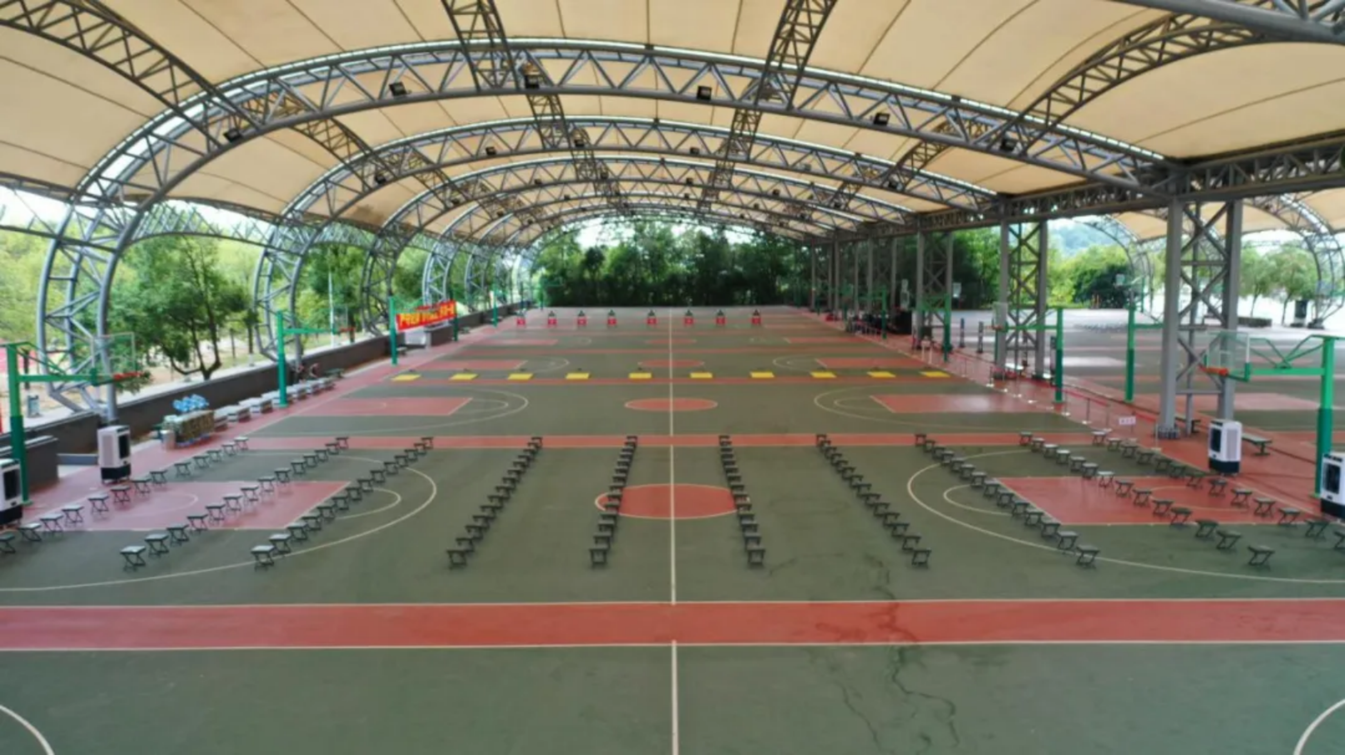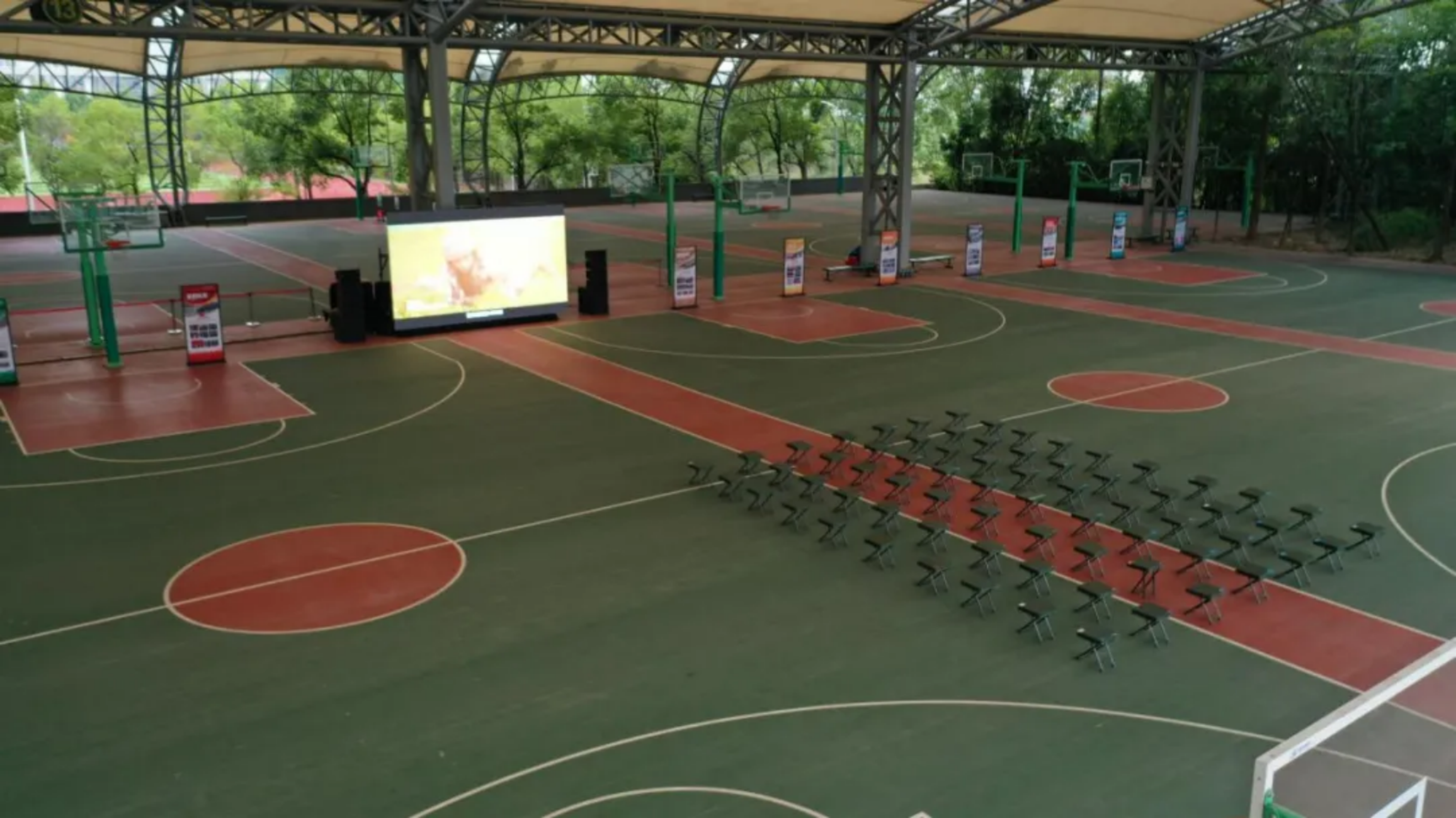 在风雨棚篮球场上