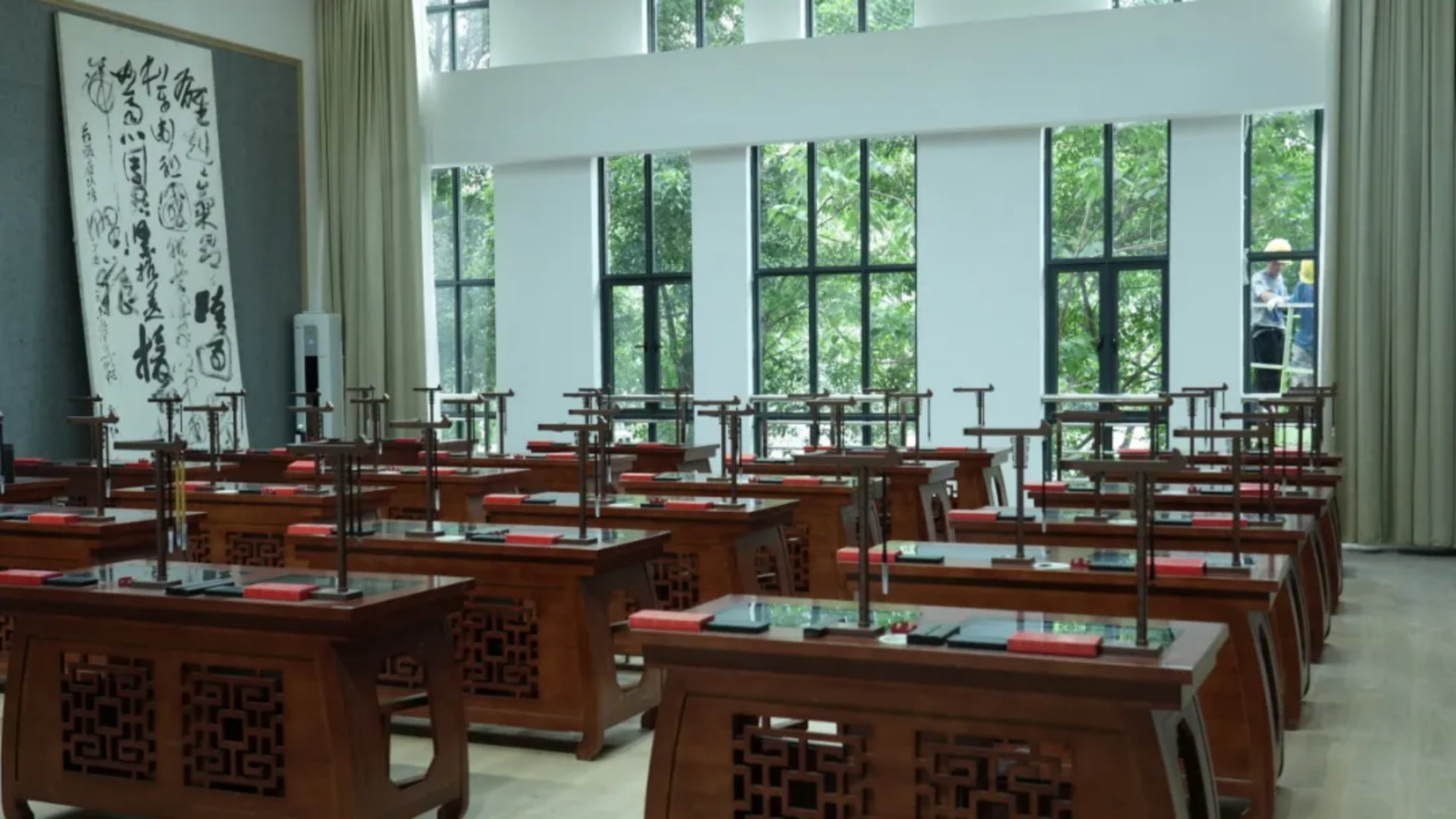 在1楼东侧休息区调整