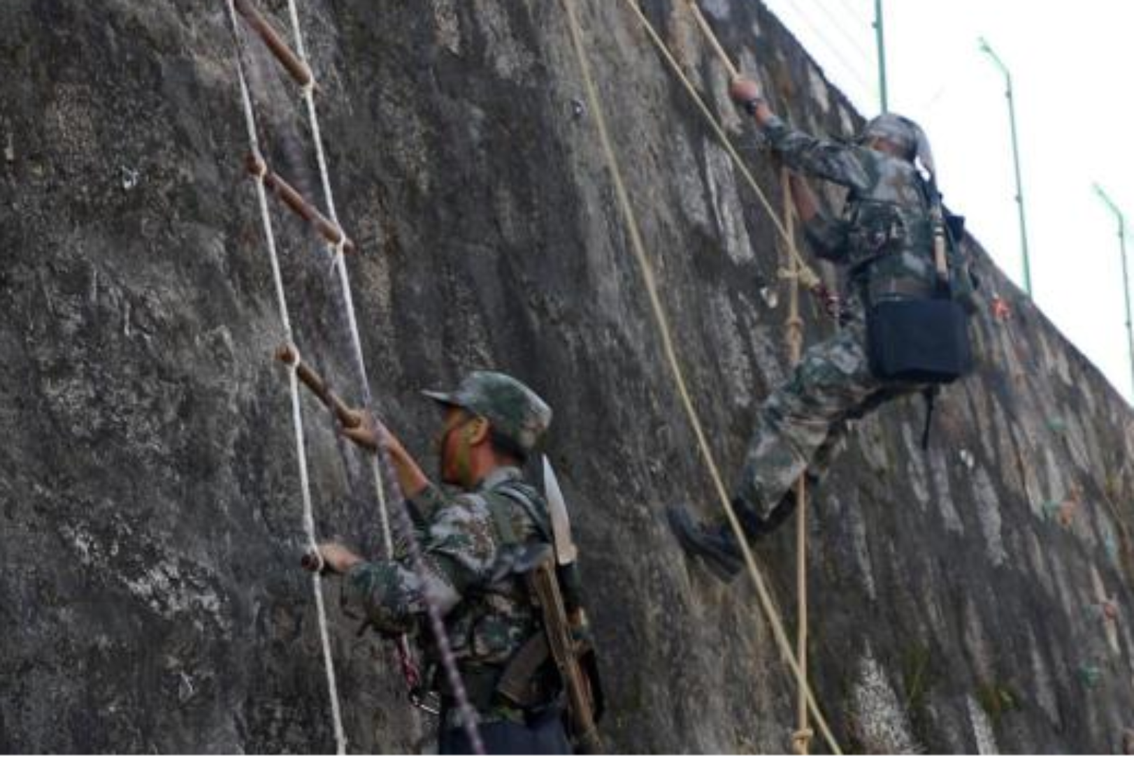 本次挑战赛围绕“吃、住、行、藏、防”五个方面,设置取火净水、露营、通过特殊地形、掩体构筑与伪装、野外防护5个赛段10个实战化科目。