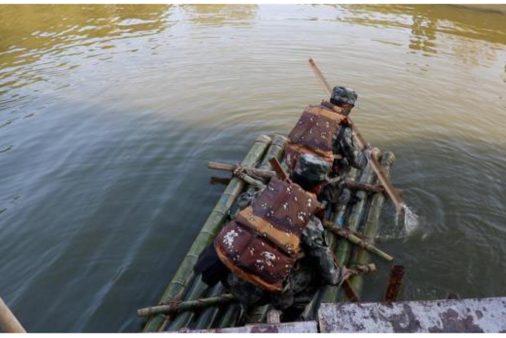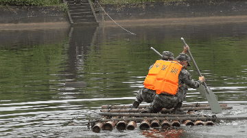 背包绳牢牢系于两树之间,毛毯覆盖其上,巧手翻飞之间,结实牢固的吊床诞生;船桨劈波斩浪,竹筏破开粼粼湖面,串串连珠激起,挥洒在队员们冲向胜利的航迹……