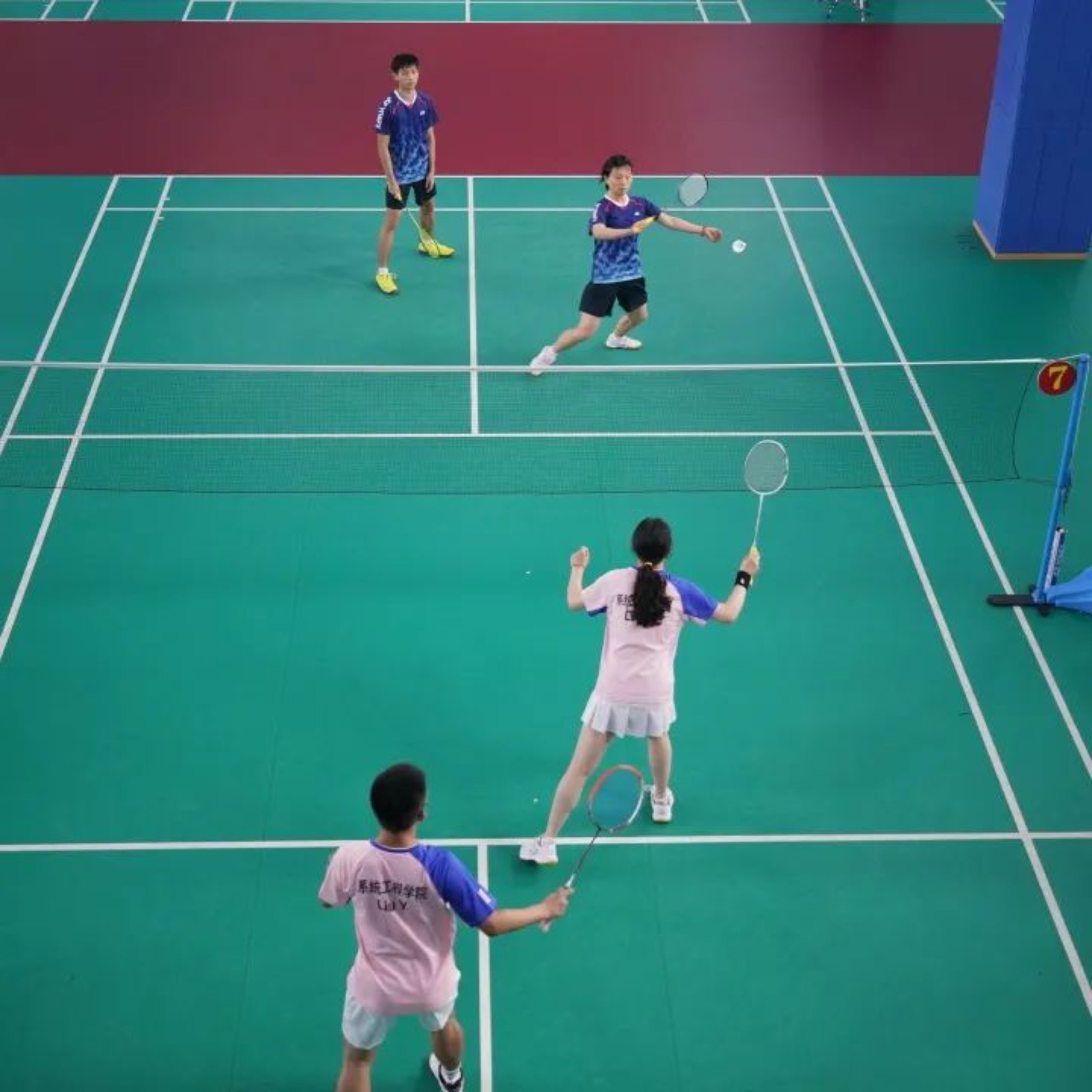 “干脆利落的扣杀,强劲有力的跳杀,猝不及防的网前扑杀……”6月19日,学校第51届军事体育运动会“奋进杯”羽毛球赛现场热烈,掌声雷动。