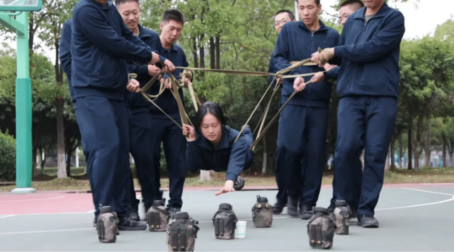 背包绳织出的网络不仅拉起“排雷手”更连接着彼此的心协同起网,同步移网细心沉网面对雷场的“荆棘丛生”一个人的热情或许不够一群人的热情定能排除万难