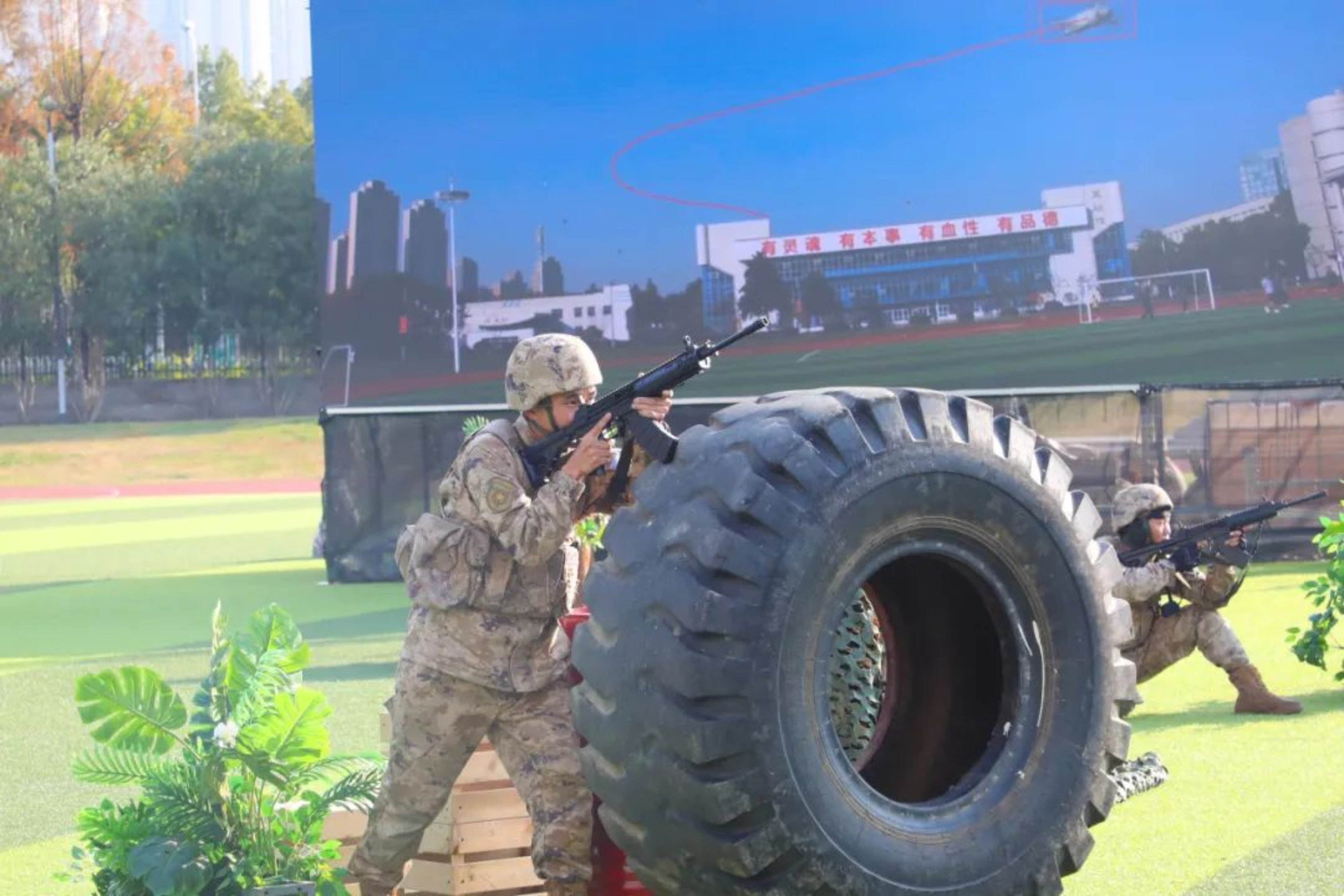 硝烟弥漫中,任务分队穿插行进,灵活处置特情,现场气氛紧张激烈。