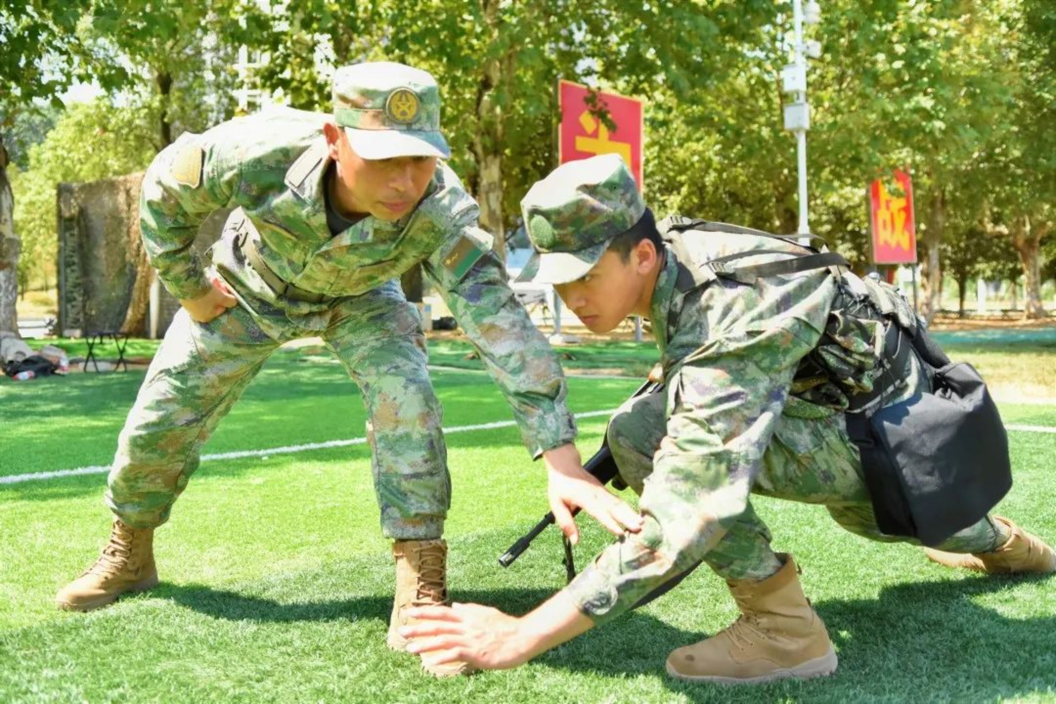 印象最深的,是战备战术课上胡杰民教员通红的手掌。夏日,操场被烈日烧得滚烫。我有点害怕受伤,最基本的卧倒动作都做得有些扭捏,被教员抓了个“正着”。他在我面前示范了一遍分解动作、一遍连贯动作,指导我找准发力部位。在教员纠正我的动作时,我看到他手掌后侧和手腕上已经划了几道伤口,心中泛起阵阵羞愧之情……那天,胡教员不只教会了我卧倒这个动作,还教给了我不怕苦累的精神。 —— 武浩天